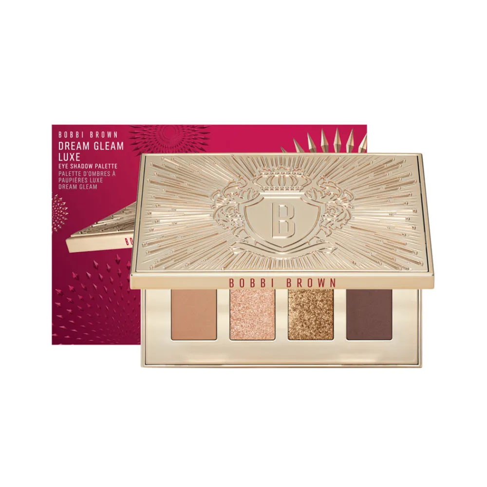In einem eleganten, goldfarbenen Gehäuse präsentiert sich die Bobbi Brown Dream Glam Luxe Eyeshadow Palette. Die edle Verziehrung mit dem ikonischen Bobbi Brown-Emblem verleiht der Palette einen Hauch von Luxus. Der robuste, kunstvoll gestaltete Deckel schützt die Lidschatten effektiv, während das kompakte Design eine einfache Handhabung ermöglicht. Die künstlerische Anmutung dieser Palette zieht die Blicke auf sich und macht sie zu einem begehrten Accessoire in jeder Kosmetiksammlung. Ihre visuelle Ästhetik ist ebenso überzeugend wie ihre innere Vielfalt und Funktionalität.