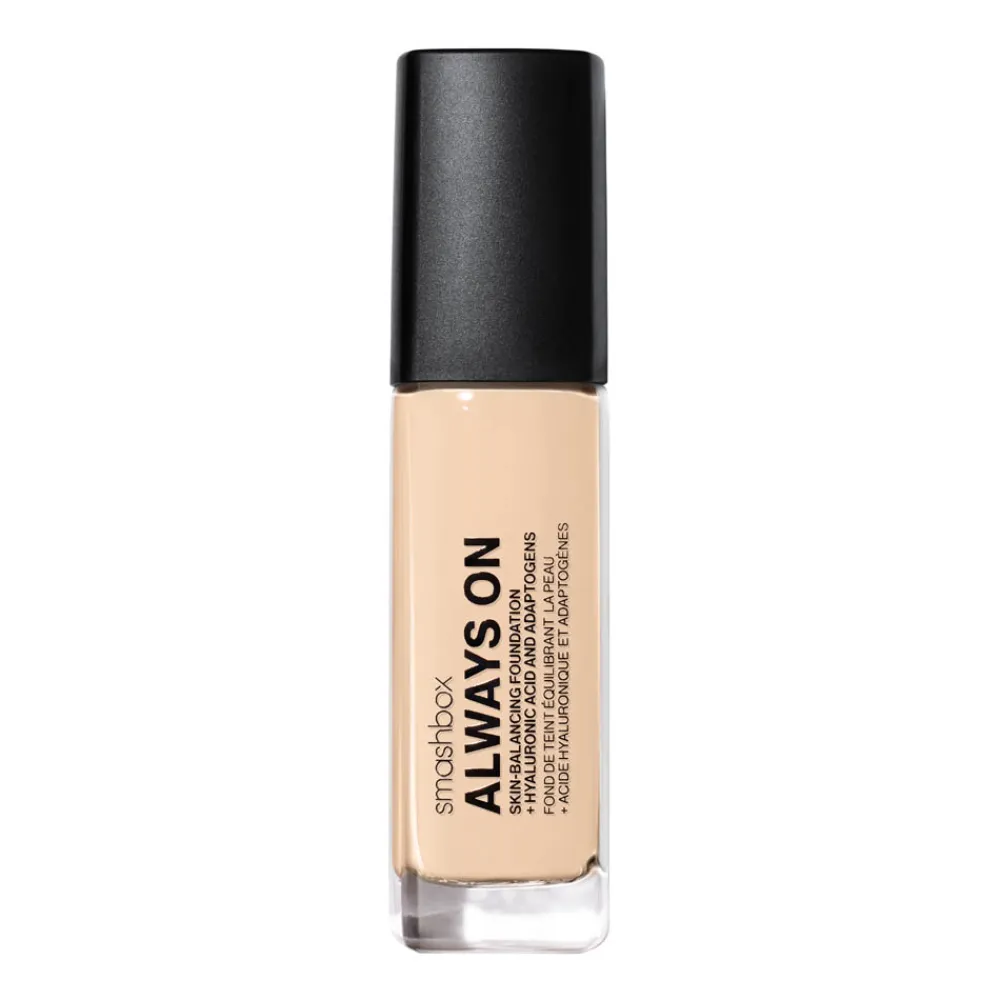 Die Smashbox Always On Skin Balancing Foundation setzt neue Maßstäbe in der Hautpflege und Kosmetik. Mit ihrem innovativen Balance-Boost-Komplex, angereichert mit der feuchtigkeitsspendenden Kraft der Hyaluronsäure, sorgt sie für eine sofortige und langanhaltende Feuchtigkeitsversorgung. Dank der adaptogenen Inhaltsstoffe agiert diese Foundation wie ein Thermostat für Ihre Haut, reguliert den Öl- und Feuchtigkeitsgehalt und verbessert das natürliche Gleichgewicht. Sie bietet eine aufbaubare, mittlere bis volle Deckkraft, die Rötungen und Unregelmäßigkeiten sichtbar mildert und einen makellosen Teint offenbart. Der integrierte Primer sorgt dafür, dass die Foundation bis zu 16 Stunden lang verlässlich hält, ohne sich abzusetzen. Wasser-, schweiß- und feuchtigkeitsresistent, schützt sie zudem vor Umwelteinflüssen und ist für alle Hauttypen geeignet, vegan und frei von Tierversuchen.