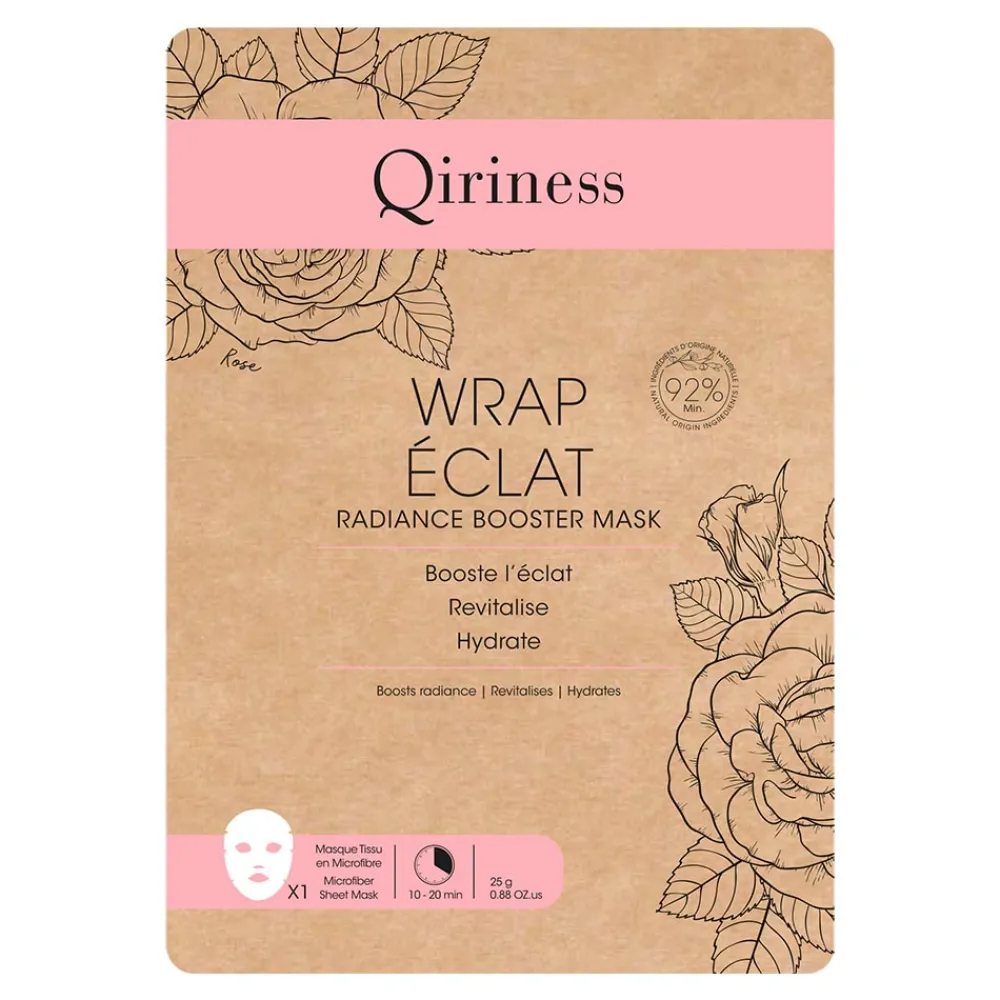 Die QIRINESS Wrap Eclat – Maske bietet Ihnen die Möglichkeit, Ihre Haut in neuem Glanz erstrahlen zu lassen. Diese innovative Mikrofasermaske ist mehr als eine einfache Pflege, sie ist eine Wohltat für Ihre Haut. Dank ihrer perfekten Haftung können die revitalisierenden Wirkstoffe tief in die Haut eindringen, um die Ausstrahlung nachhaltig zu verbessern. Ob bei trockener, empfindlicher oder Mischhaut, die Maske sorgt für ein unmittelbar aufhellendes Ergebnis, das überzeugt. Mit einem Anteil von mindestens 92% natürlichen Inhaltsstoffen wird Ihre Haut nicht nur gepflegt, sondern auch geschützt. Die sanfte Rezeptur belebt und hydratisiert, sodass Sie sich auf ein frisches und lebendiges Hautgefühl freuen können.