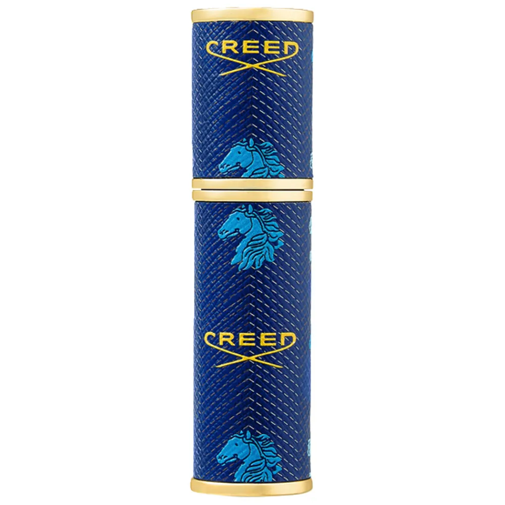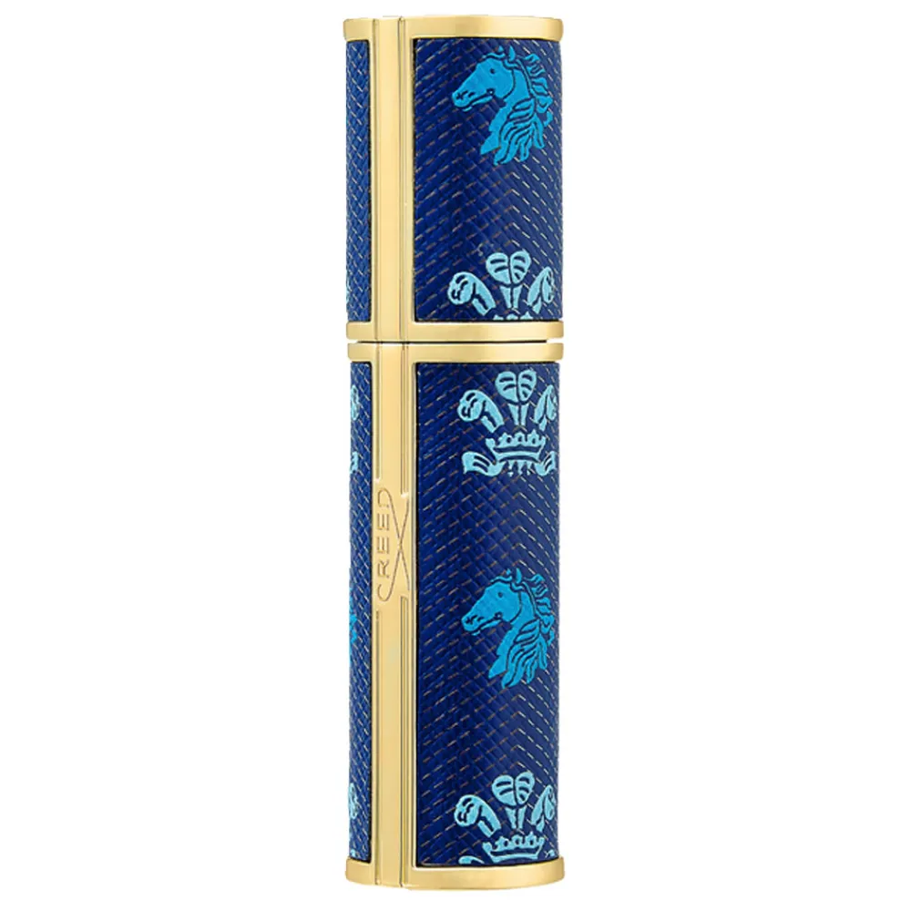 Der Creed Refillable Travel Spray präsentiert sich in einem edlen, blauen Design, das sowohl modern als auch zeitlos wirkt. Die samtige Oberfläche des Leders unterstreicht die Hochwertigkeit des Zerstäubers und wird durch goldene Akzente elegant ergänzt. Ein kunstvoll gestaltetes Pferdemotiv verleiht dem Flakon eine dynamische Note, während die kompakte Form ideal in Ihre Handtasche passt. Dieses Detail zeigt nicht nur Sinn für Ästhetik, sondern betont auch die Exklusivität und den Stil des Produkts. Ein Accessoire, das optisch und funktional höchsten Ansprüchen gerecht wird und Ihnen das Gefühl von unvergleichlichem Luxus bietet.