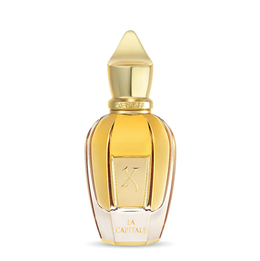 Der Flakon des Xerjoff La Capitale ist ein Meisterwerk der Eleganz und des Designs. Seine Form erinnert an eine kostbare Schmuckschatulle, die kostbare Geheimnisse birgt. Der Körper ist in einem edlen Goldton gehalten, der das luxuriöse Wesen des Duftes widerspiegelt. Die geschwungenen Linien und die präzise Verarbeitung spiegeln die Raffinesse wider, die Sie von einem Produkt dieser Klasse erwarten. Der Verschluss in seiner majestätischen Form verleiht dem Flakon eine königliche Anmutung und macht ihn zu einem Blickfang in jeder Parfümsammlung. Dieses Design zeugt von zeitloser Schönheit und unterstreicht die erlesene Qualität des Inhalts.