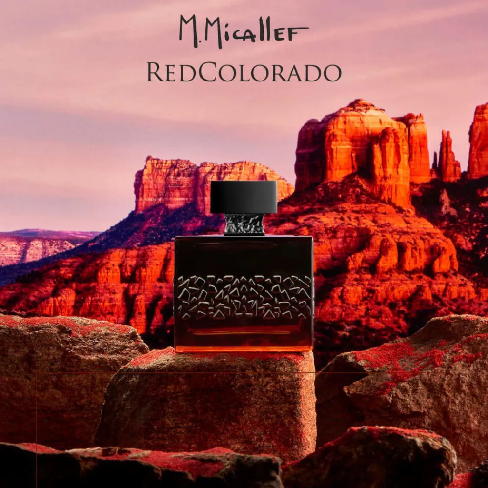 Der Flakon des M.Micallef RedColorado Eau de Parfum Nat. Spray fasziniert mit seinem tiefroten Farbverlauf, der an die glühenden Sonnenuntergänge über den roten Felsen erinnert. Seine eckige Form und die strukturierte Oberfläche verleihen ihm eine einzigartige Präsenz, die kraftvoll und elegant zugleich wirkt. Die kunstvoll gestalteten Details, die an schimmernde Steine erinnern, unterstreichen die mystische Aura des Duftes. Die massive Kappe in Schwarz fügt sich harmonisch in das Gesamtbild ein und verleiht dem Flakon einen majestätischen Charakter. Dieses Design ist eine Hommage an die ungezähmte Schönheit der Natur, die in jedem Tropfen dieses Parfums spürbar wird.