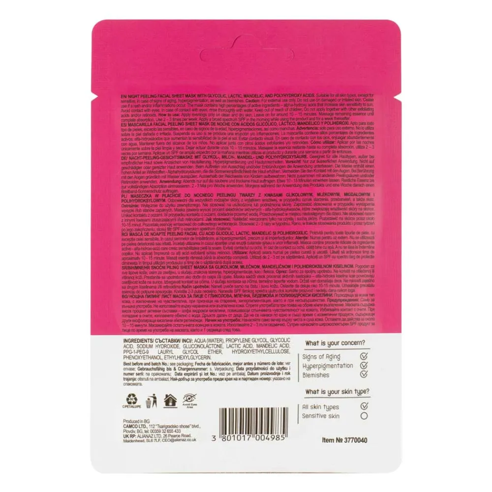 - Nachtpeeling-Gesichtsmaske mit Glykol-, Milch-, Mandel- und Polyhydroxy-Säuren