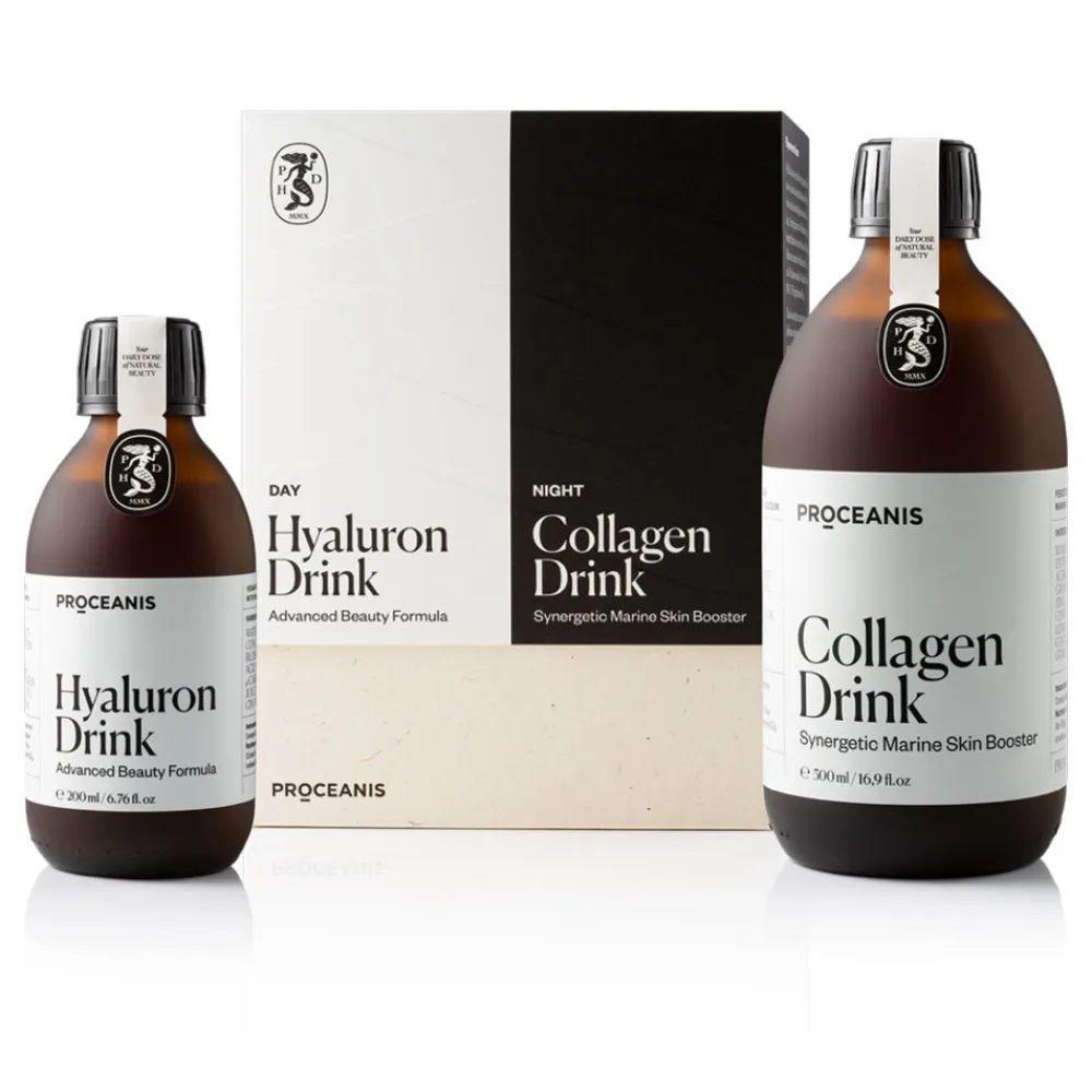 Der Proceanis Day & Night Hyaluron Drink & Collagen Drink bietet eine umfassende Pflege für Ihre Hautregeneration. Mit einer speziell abgestimmten Formel unterstützt der Hyaluron Drink tagsüber die Feuchtigkeitsversorgung der Haut durch Hyaluronsäure, während der Collagen Drink die nächtliche Kollagensynthese anregt. Dank des einzigartigen Aminosäureprofils des enthaltenen Kabeljaukollagens, das der menschlichen Haut ähnelt, wird die Hautstruktur optimal unterstützt. Besonders ab dem 25. Lebensjahr, wenn die körpereigene Kollagenproduktion abnimmt, zeigt sich die Wirkung dieser Produkte in einer spürbaren Verbesserung der Hautbeschaffenheit. Diese synergetische Kombination sorgt dafür, dass Ihre Haut rund um die Uhr gepflegt wird.