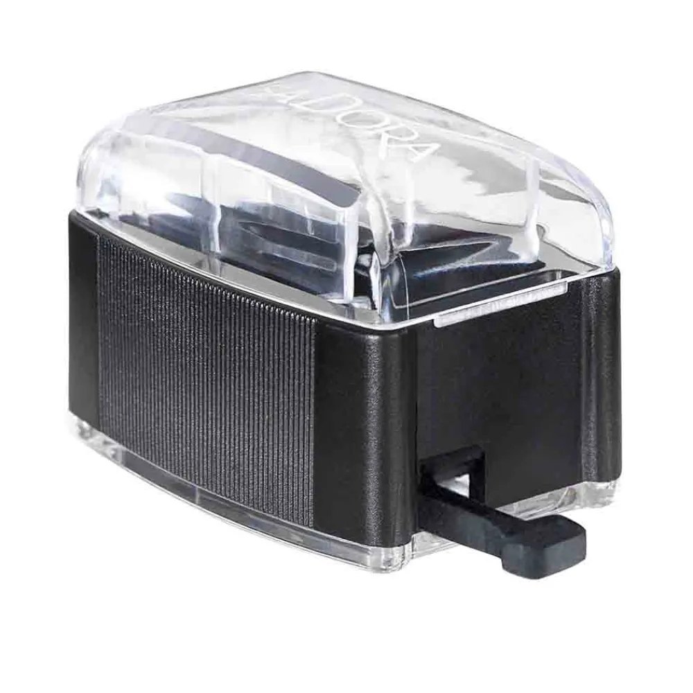 Der IsaDora Pencil Sharpener Slim besticht durch sein minimalistisches und funktionelles Design. Der klare, formschöne Deckel bietet nicht nur Schutz, sondern ermöglicht auch einen Blick auf die Technik im Inneren. Mit seinen abgerundeten Kanten liegt das Gehäuse angenehm in der Hand. Die schwarze Farbgebung kombiniert mit transparenten Akzenten verleiht ihm ein modernes und stilvolles Aussehen. Der Abfallsammler ist geschickt integriert und bietet eine saubere Lösung für unterwegs. Dieses durchdachte Design vereint Ästhetik und Praktikabilität und macht den perfekten Begleiter für Ihre tägliche Schönheitsroutine.