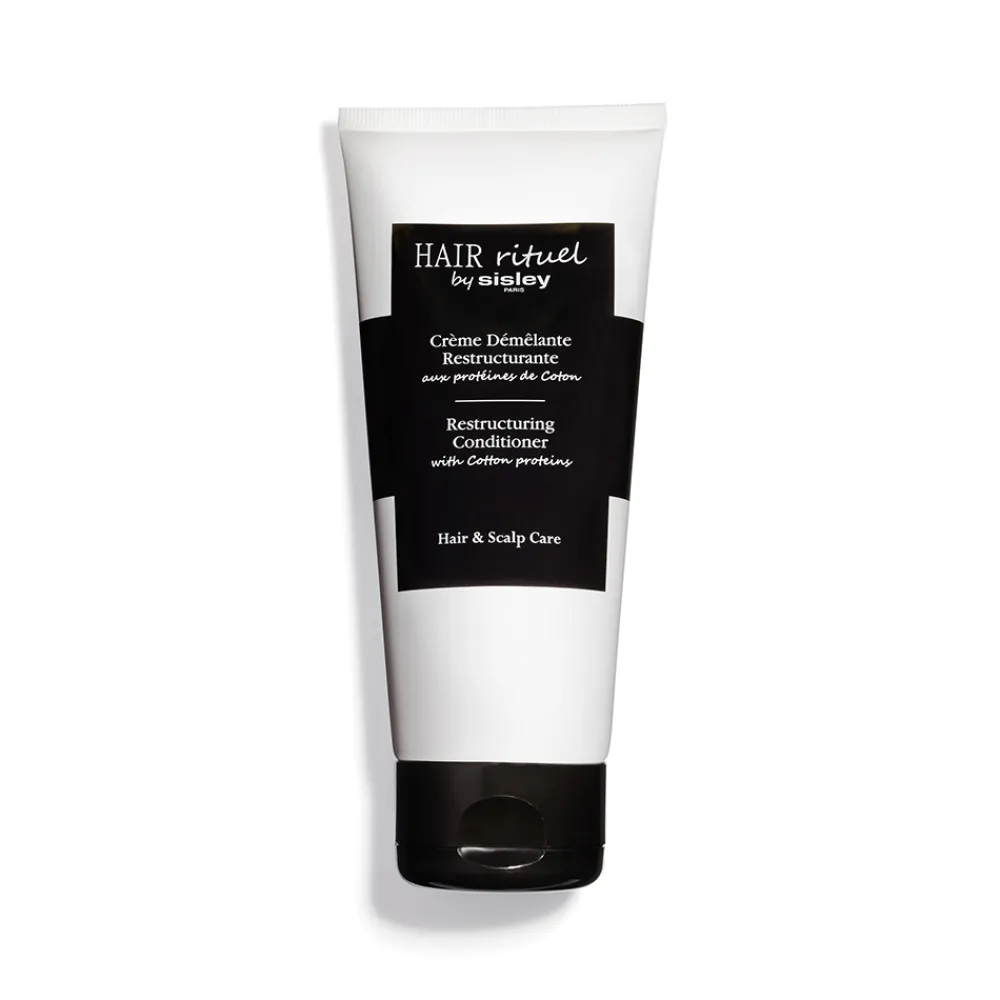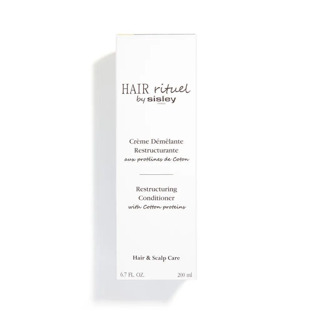Der HAIR RITUEL by Sisley Restructuring Conditioner with Cotton proteins ist Ihre Lösung für geschmeidiges, glänzendes Haar. Diese hochwertige Pflegeformel ermöglicht es Ihnen, Ihr Haar mühelos zu entwirren, während es gleichzeitig tiefenwirksam restrukturiert wird. Reichhaltige Aktivstoffe versorgen Ihr Haar mit essenziellen Lipiden, die Ihre Haarstruktur stärken und ihm neuen Glanz verleihen. Diese pflegende Komposition glättet die Haarschuppen, wodurch Ihr Haar nicht nur widerstandsfähiger wird, sondern auch sichtbar strahlt. Die leichte, zart schmelzende Textur des Conditioners umhüllt jedes Haar mit einem frischen und belebenden Duft, der Ihre Pflegeerfahrung zu einem wahren Vergnügen macht.