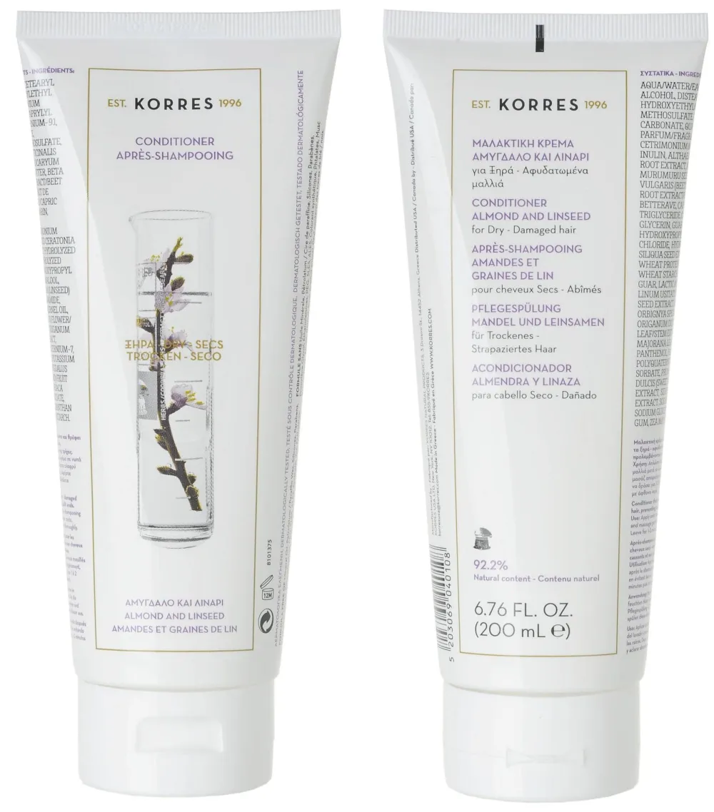Der KORRES ALMOND & LINSEED – dry Conditioner bietet eine tiefenwirksame Pflegeformel, die speziell für trockenes und strapaziertes Haar entwickelt wurde. Mit der nährenden Kraft von Mandel und Leinsamen wird die Haarstruktur sanft repariert und gestärkt. Dieser Conditioner sorgt nicht nur für eine verbesserte Kämmbarkeit, sondern schützt das Haar auch vor unerwünschtem Haarbruch und Spliss. Durch seine feuchtigkeitsspendenden Eigenschaften wird Ihr Haar geschmeidig weich und erhält einen natürlichen Glanz. Die Formel verhindert darüber hinaus die statische Aufladung und Kräuseln, sodass Ihr Haar stets perfekt gestylt wirkt und gesund aussieht. Eine Wohltat für Ihr Haar, die es verdient hat, Teil Ihrer Pflege-Routine zu sein.