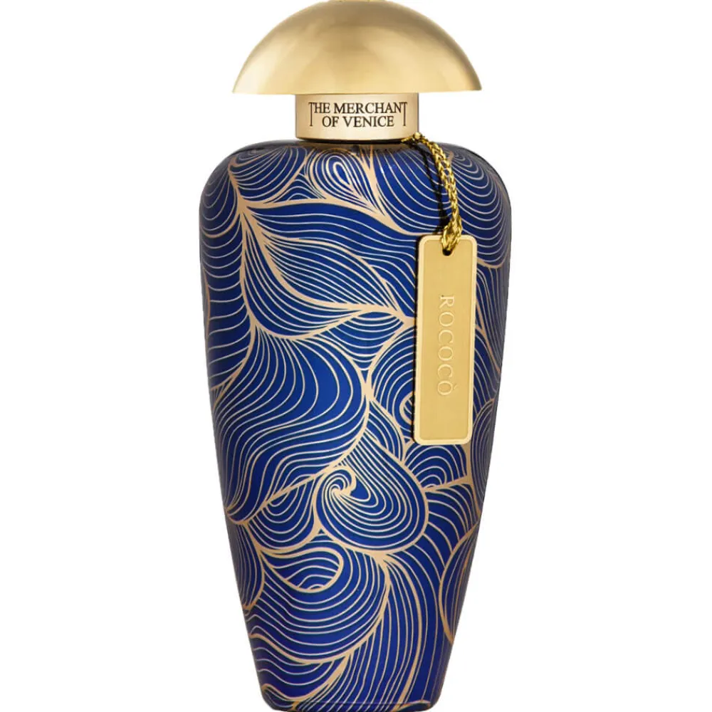 Der Flakon von THE MERCHANT OF VENICE Rococò Eau de Parfum ist ein Meisterwerk der Designkunst. Die elegante Form erinnert an kunstvolle Vasen vergangener Epochen, deren geschwungene Linien sich harmonisch um den Korpus winden. Die tiefblaue Oberfläche mit goldenen Verzierungen erweckt den Eindruck von Wellen, die sanft über das Glas gleiten und dabei einen Hauch von Luxus und Anmut ausstrahlen. Der goldene Verschluss rundet das Gesamtbild perfekt ab und zeugt von einer Liebe zum Detail, die das Rokoko auszeichnete. Die geschmackvolle Gestaltung und die feinsinnige Ästhetik machen diesen Flakon zu einem zeitlosen Schmuckstück, das jedes Ambiente mit einem Hauch von gehobener Eleganz bereichert.