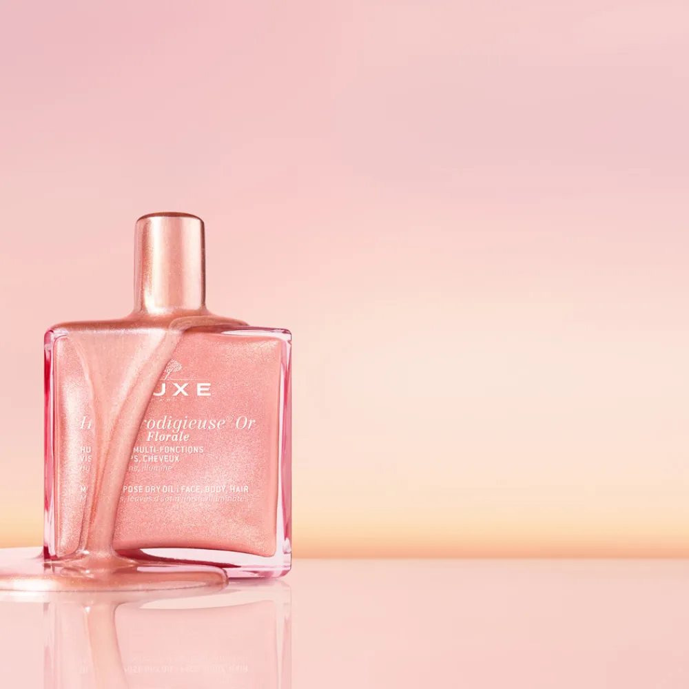 NUXE Huile Prodigieuse® Or Florale ist eine wahre Hommage an die Schönheit und Pflege. Diese exquisite Komposition aus sieben wertvollen, pflanzlichen Ölen umhüllt Ihre Haut mit einer leichten, nicht fettenden Textur und spendet intensive Feuchtigkeit. Die mineralischen Schimmerpartikel natürlichen Ursprungs verleihen Ihrem Teint einen faszinierenden roségoldenen Glanz, der alle Hauttypen in ein strahlendes Licht taucht. Dieses Trockenöl umschmeichelt Ihre Sinne mit seinem floralen, frischen Duft, der eine belebende Energie ausstrahlt. Eine nachgewiesene Wirksamkeit und höchste Zufriedenheit bei Anwenderinnen belegen die herausragenden Eigenschaften dieses Produkts. NUXE Huile Prodigieuse® Or Florale wird in Frankreich entwickelt und hergestellt und spiegelt höchste Ansprüche an Qualität und Hautverträglichkeit wider.