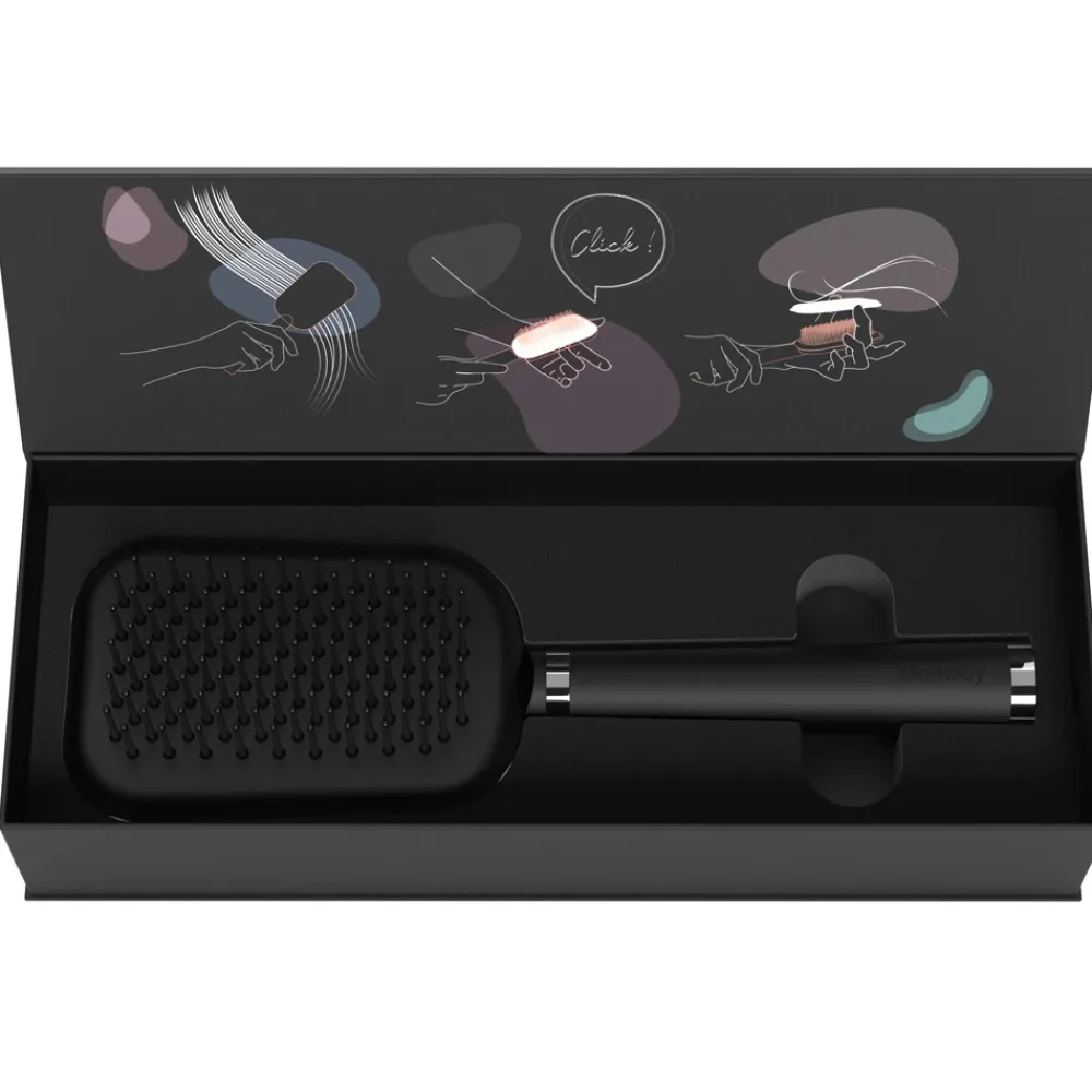 Optisch präsentiert sich die Bellody Haarbürste in einem eleganten, modernen Design. Die klaren Linien und die matte Oberfläche verleihen ihr eine zeitlose Ästhetik, die in jedem Badezimmer ein Highlight setzt. Der Griff liegt ergonomisch in der Hand und ermöglicht eine komfortable Handhabung. Besonders hervorzuheben ist die abnehmbare Abdeckung, die nahtlos in die Form der Bürste integriert ist und das Reinigen zum Kinderspiel macht. Das durchdachte Design verbindet Funktionalität und Stil auf eindrucksvolle Weise, sodass sich die Bürste nahtlos in Ihre Pflegeroutine einfügt.