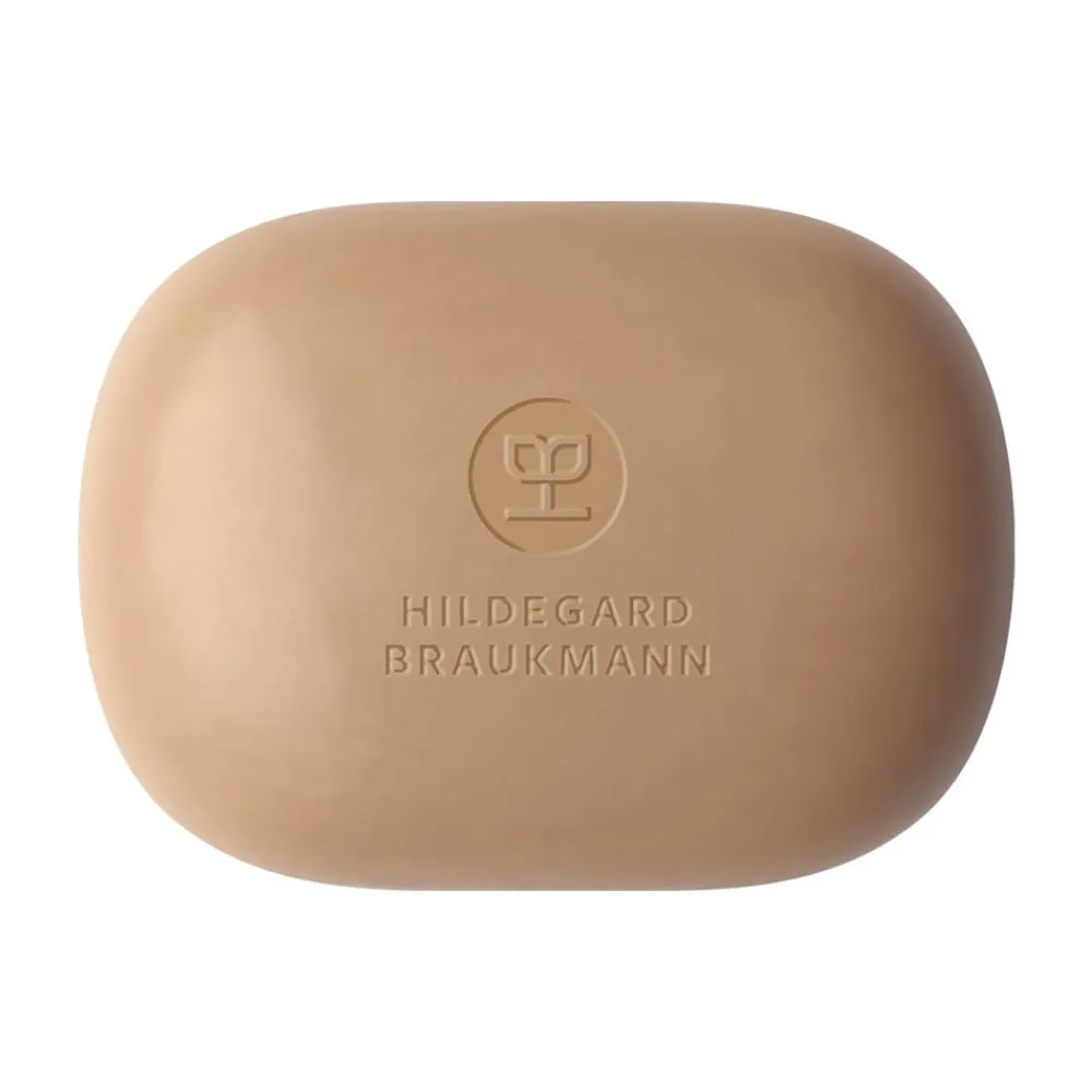Die Hildegard Braukmann 7 Kräuter Seife überzeugt nicht nur durch ihre inneren Werte, sondern auch durch ihr schlichtes und dennoch elegantes Design. Die ovale Form der Seife liegt angenehm in der Hand und sorgt für eine einfache Anwendung. Die dezente, naturbelassene Farbgebung spiegelt die Reinheit und Natürlichkeit der Inhaltsstoffe wider. Die klar geprägte Markensignatur auf der Oberfläche verleiht der Seife einen Hauch von Eleganz und Exklusivität. Dieses Design, gepaart mit der hochwertigen Rezeptur, macht die Seife zu einem stilvollen Begleiter in Ihrem Badezimmer.