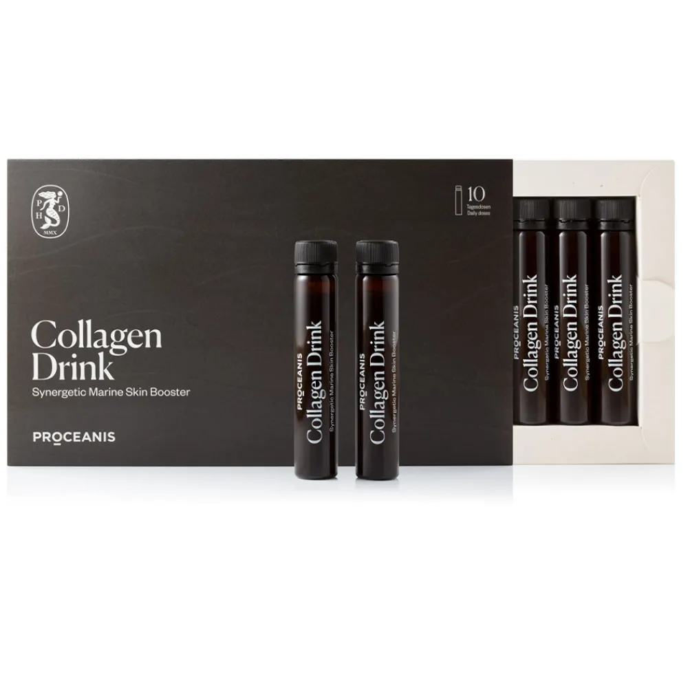 Das Design des Proceanis Travel Collagen Drink besticht durch seine elegante und kompakte Form, die ideal für unterwegs ist. Die dunklen Fläschchen strahlen eine schlichte Eleganz aus und sind in einer stilvollen Box arrangiert. Die Verpackung ist nicht nur funktional, sondern verleiht auch Ihrem Badezimmerregal eine edle Note. Jedes Element ist sorgfältig durchdacht, um den hochwertigen Charakter des Produktes zu unterstreichen und gleichzeitig eine praktische Anwendung zu gewährleisten. Perfekt für Ihre tägliche Schönheitsroutine, ob zu Hause oder auf Reisen.