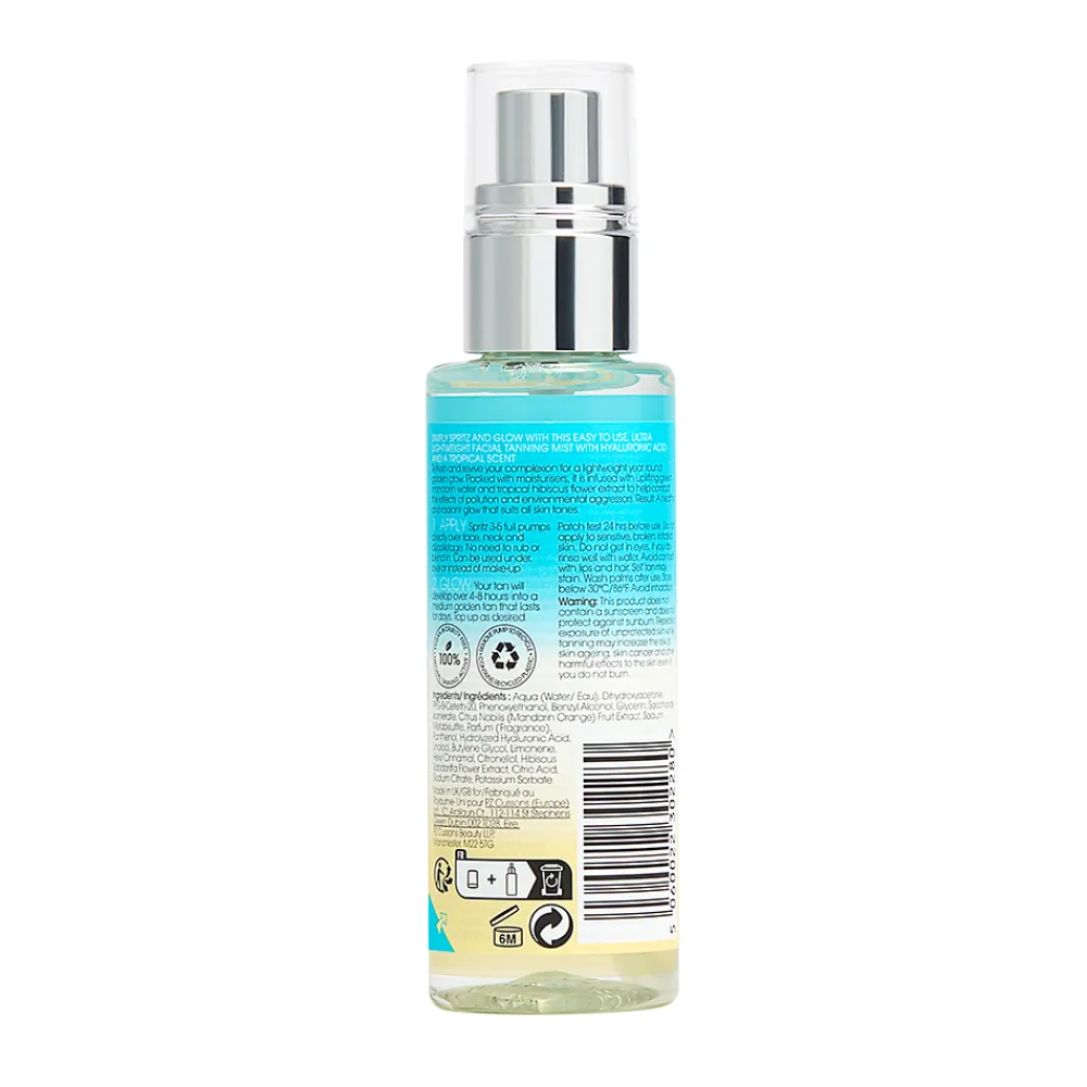 Das St. Tropez Bronzing Water Face Mist vereint erfrischende Pflege und subtile Bräune in einem. Die innovative Formel enthält 100% natürliches DHA, das die Haut sanft tönt und die Bräune über mehrere Tage hinweg lebendig hält. Angereichert mit Mandarinenwasser und Lotusblütenextrakt, schützt es die Haut vor schädlichen Umwelteinflüssen und beugt so frühzeitiger Hautalterung vor. Hyaluronsäure sorgt für eine strahlende, aufgepolsterte Haut, die an Jugendlichkeit gewinnt. Der feine, klare Wassernebel legt sich sanft wie ein Puder auf die Haut und kann zu jeder Tageszeit verwendet werden sei es als erfrischender Primer am Morgen, zum Auffrischen des Make-ups tagsüber oder als entspannendes Finish am Abend.