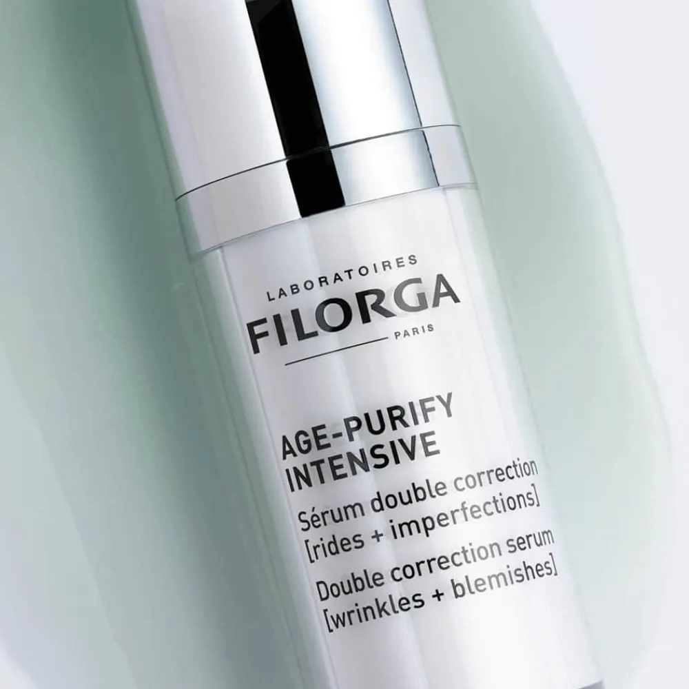 Das Filorga Age-Purify Intensive Serum bietet Ihnen eine innovative Lösung, um sowohl Falten als auch Unreinheiten mit nur einem Produkt zu behandeln. Der Hyaluro-Youth Complex arbeitet intensiv gegen Falten, indem er feuchtigkeitsspendende Hyaluronsäure, glättende Peptide und füllende Glycopeptide nutzt, um die Haut sichtbar zu straffen und zu erneuern. Gleichzeitig sorgt der Dermo-Rescue Complex für eine porenverfeinernde Wirkung, indem er mit Zink und Mikro-Peeling-Säuren überschüssigen Talg reduziert und Mitesser minimiert. Eine zusätzliche pflanzliche Komponente wirkt präventiv gegen Unreinheiten, um den Hautton zu harmonisieren. Das Serum überzeugt durch seine nicht komedogene, ultra-leichte Textur, die schnell einzieht und der Haut eine seidige Geschmeidigkeit verleiht.