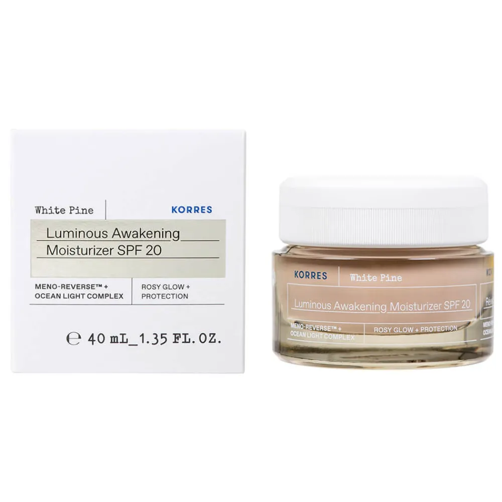 Erleben Sie ein strahlendes Hautbild mit der KORRES White Pine Feuchtigkeitscreme für strahlende Haut. Diese exquisite Pflegeformel kombiniert die innovative Meno-Reverse™-Technologie mit dem nährenden Ocean Light Complex, um Ihre Haut sichtbar zu verjüngen und zu straffen. Die rosé-getönte Textur verschmilzt sanft mit Ihrer Haut, während der integrierte SPF 20 einen zuverlässigen Schutz vor schädlichen UV-Strahlen bietet. Speziell entwickelt für die Bedürfnisse der Haut nach den Wechseljahren, revitalisiert diese Creme Ihre Haut und verleiht ihr einen gesunden, rosigen Glanz. Gönnen Sie Ihrer Haut die Pflege, die sie verdient, und fühlen Sie sich jeden Tag strahlend schön.