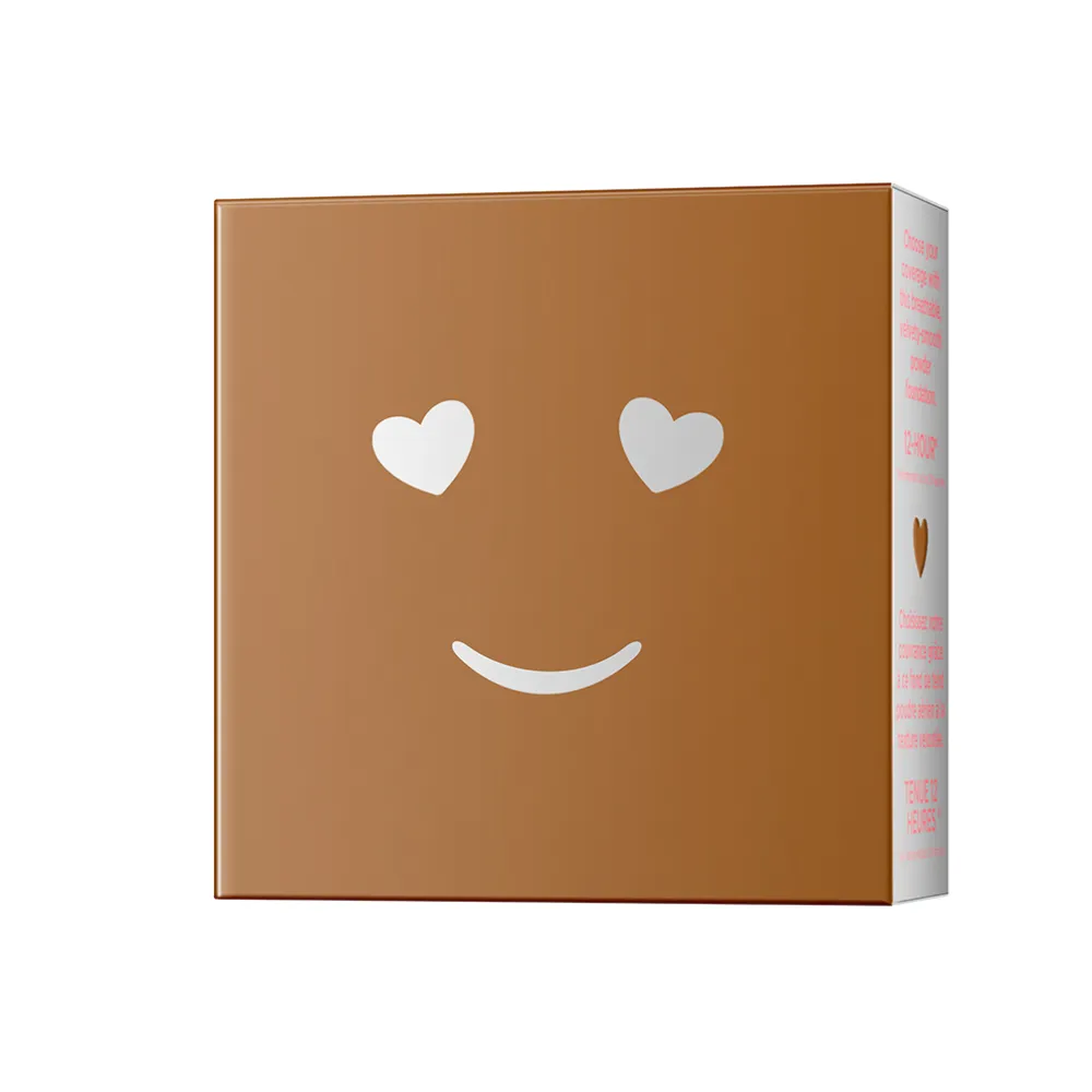 Die Benefit Hello Happy Velvet Puder Foundation präsentiert sich in einer charmanten, quadratischen Verpackung, die mit einem verspielt-eleganten Design begeistert. Der kompakte Puderdöschen-Deckel ist in einem warmen Braunton gehalten, der sanft zur Geltung kommt. Ein praktischer Spiegel im Inneren ermöglicht mühelose Touch-ups unterwegs. Das markante Gesichtsmotiv mit Herzaugen auf der Oberseite verleiht dem Produkt einen freundlichen Touch. Ein kleiner, flacher Pinsel und ein Schwämmchen sind ebenfalls enthalten und fügen sich nahtlos in das aufklappbare Design ein. Diese funktionalen Ergänzungen machen das Set zu einem treuen Begleiter für Ihren Alltag.