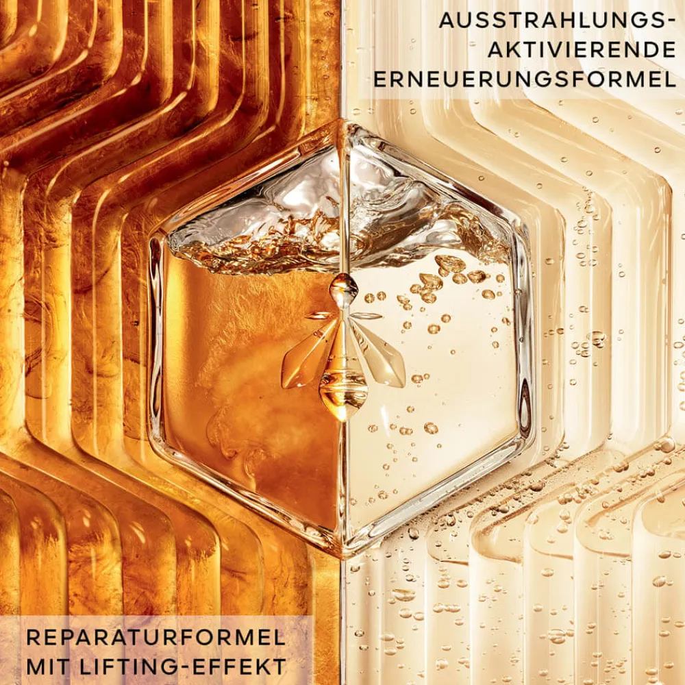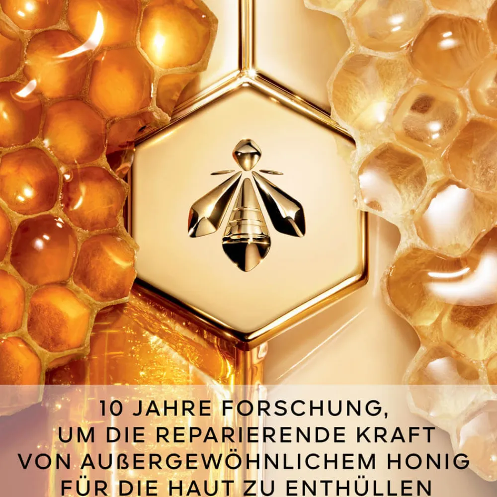 Das Guerlain Double R Eye Serum bietet eine luxuriöse Pflegeerfahrung, inspiriert von ästhetisch-dermatologischen Behandlungen. Mit seiner einzigartigen Renew-Formel schenkt es Ihrer Augenpartie eine revitalisierte Ausstrahlung. Die Kombination aus weißem Honig und einem erfrischenden Komplex wirkt tief in der Epidermis, um die Strahlkraft Ihrer Haut zu intensivieren und ihre Jugendlichkeit zu bewahren. Die Repair-Formel ergänzt diesen Effekt durch die Dynamic BlackBee Repair-Technologie. Diese nutzt die Wirksamkeit polyfermentierter Honigsorten für eine spürbare Straffung der Haut. Die außergewöhnlichen Bienenprodukte, handverlesen von den geschützten Inseln, fördern die natürlichen Reparaturmechanismen und mindern Zeichen vorzeitiger Hautalterung. So wirkt die Augenpartie glatter, Schwellungen und Farbabweichungen werden sichtbar reduziert, was zu einem frischen und offenen Blick führt.