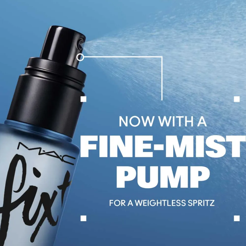 Das Design des Mac Fix + Multitasking Setting Sprays ist ebenso durchdacht wie seine Inhaltsstoffe. Der elegante, transparente Flakon ermöglicht einen klaren Blick auf das Produkt und strahlt Schlichtheit und Professionalität aus. Die schwarze, gut in der Hand liegende Sprühpumpe sorgt für eine gleichmäßige Verteilung des feinen Nebels, während die stilvolle Beschriftung einen modernen Akzent setzt. Ein praktisches Accessoire, das in keiner Kosmetiksammlung fehlen darf, und dabei auch optisch überzeugt.