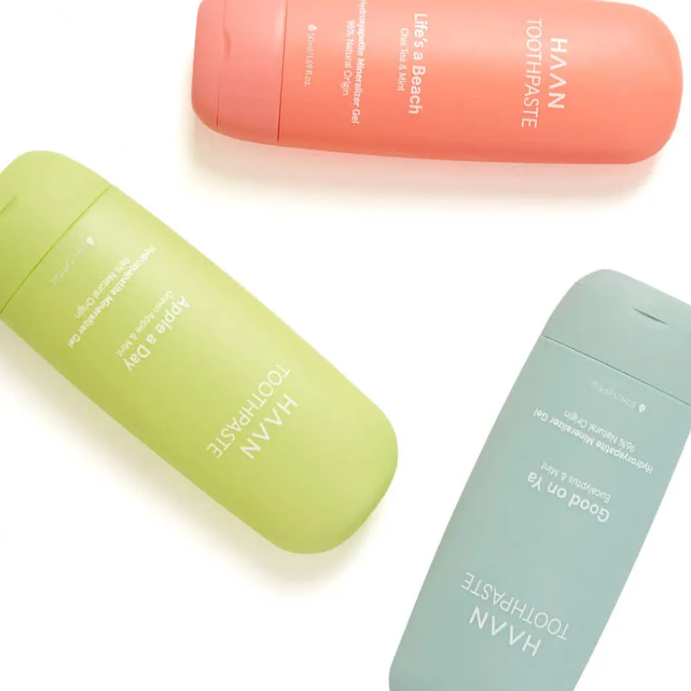 Die Tube der HAAN Toothpaste ist ein Paradebeispiel für formschönes, modernes Design. In einem lebhaften Koralleton gehalten, strahlt sie Energie und Lebendigkeit aus. Die geschwungene Form liegt angenehm in der Hand und ist ideal für unterwegs. Mit ihrer kompakten Größe passt sie problemlos in jede Reisetasche, während die robuste Konstruktion für Langlebigkeit sorgt. Der schlichte Schriftzug verleiht der Verpackung eine elegante Note und rundet das minimalistische Design ab. Ein Produkt, das Funktionalität und Ästhetik in perfekter Harmonie vereint.