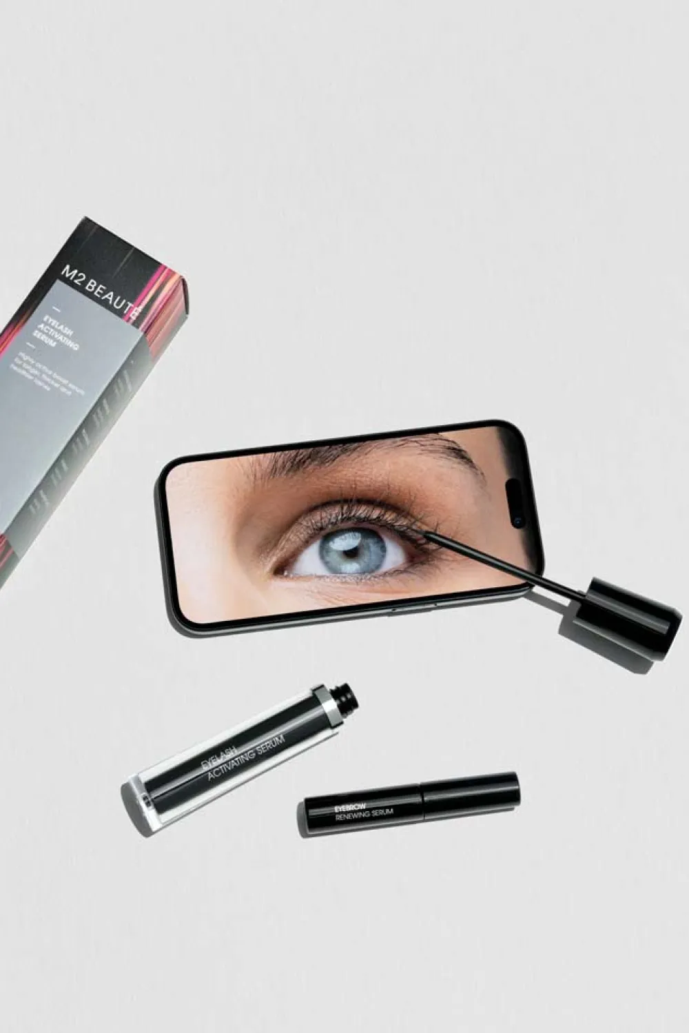 Das Eyelash Activating Serum kommt in einem eleganten, schlanken Flakon, der durch seine klare Linienführung besticht. Der schwarze Verschluss in Kombination mit dem transparenten Fläschchen verleiht dem Produkt eine moderne, stilvolle Optik. Die beigelegte Sondergröße des Eyebrow Renewing Serums ergänzt das Set harmonisch. Der kompakte schwarze Behälter ist praktisch und ideal für unterwegs. Zusammen bilden diese Produkte eine visuell ansprechende Einheit, die in jedem Badezimmer ein Highlight darstellt.