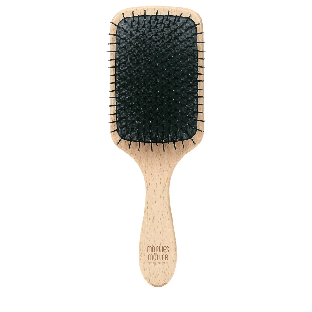 Das Design der Marlies Möller Hair & Scalp Brush ist ein wahrer Hingucker. Mit ihrem eleganten Holzgriff liegt sie komfortabel in der Hand und verleiht der Bürste eine natürliche, stilvolle Optik. Die gepolsterte Basis und die flexiblen Borsten sind so gestaltet, dass sie mühelos durch das Haar gleiten und gleichzeitig die Kopfhaut sanft massieren. Die Kombination aus Form und Funktion macht diese Bürste zu einem idealen Begleiter für die tägliche Haarpflege. Sie ist nicht nur ein funktionales Werkzeug, sondern auch ein ästhetisches Accessoire, das in jedem Badezimmer seinen Platz findet.