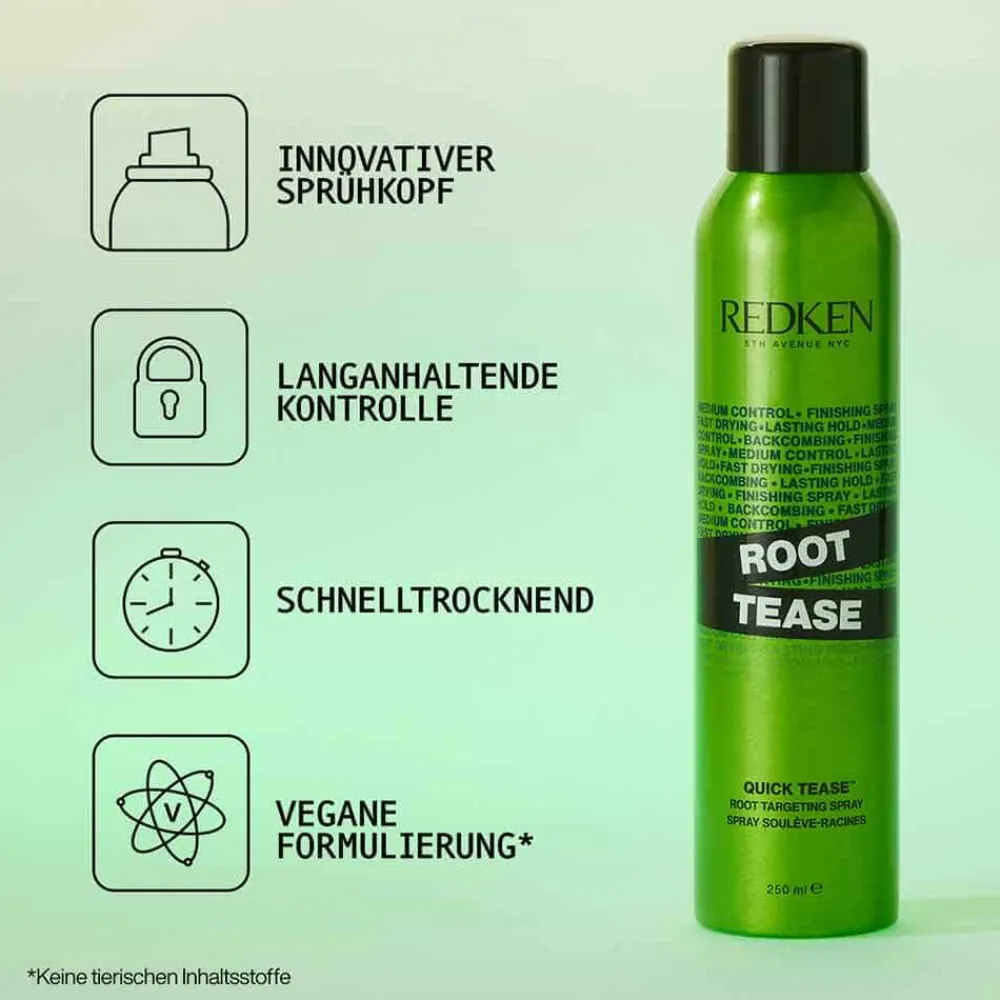 Das Redken Root Tease ist Ihr Schlüssel zu einem makellosen Haarstyling. Speziell entwickelt, um selbst anspruchsvollste Frisuren zu unterstützen, bietet dieses Finishing Spray eine beeindruckende Kontrolle direkt am Haaransatz. Es ermöglicht Ihnen, mühelos voluminöse und perfekt toupierte Looks zu kreieren, die den ganzen Tag halten. Dank der speziellen Formel verleiht es Ihrem Haar ein modernes, mattes Finish, das Eleganz und Stil vereint. Einfach in der Anwendung, sorgt das Redken Root Tease dafür, dass Sie immer bestens gestylt sind. Vertrauen Sie auf die bewährte Qualität von Redken, um Ihre Haarträume Wirklichkeit werden zu lassen.
