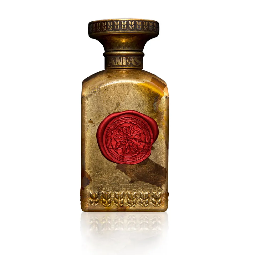 Das ANFAS Eau de Parfum präsentiert sich in einem Flakon von bemerkenswerter Schönheit und Raffinesse. Seine rechteckige Form strahlt Eleganz aus, während die goldene Farbgebung luxuriöse Akzente setzt. Der Flakon ist durch eine kunstvolle Verzierung in Form eines roten Siegels geschmückt, das eine subtile Leidenschaft und Exklusivität symbolisiert. Der Verschluss, mit feinen Details versehen, rundet das edle Design perfekt ab. Jeder Blick auf diesen Flakon erinnert an die luxuriöse und einzigartige Natur des Duftes, den er birgt.