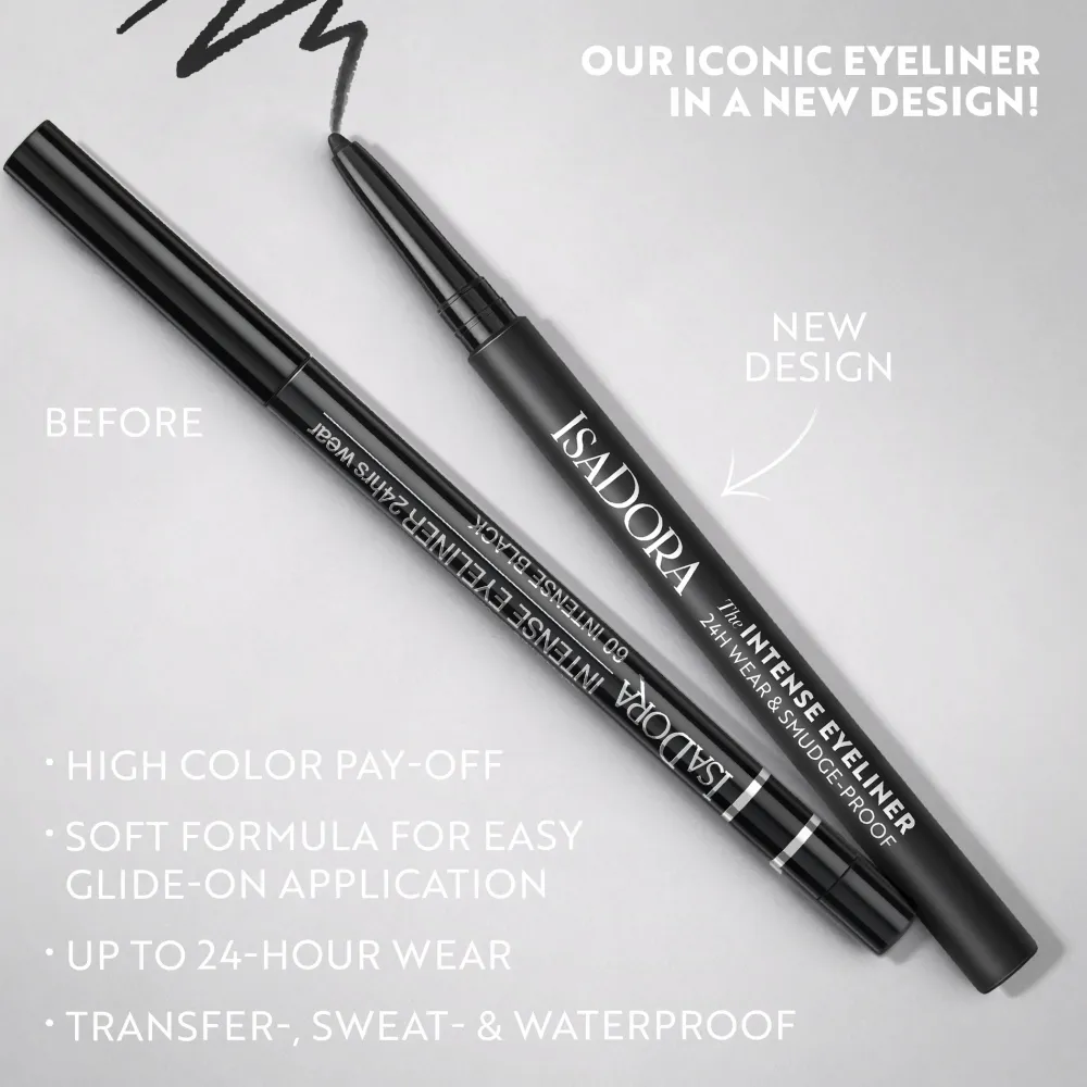 Der IsaDora The Intense Eyeliner 24H Wear & Smudge-proof begeistert durch seine hochpigmentierte und reine Formulierung, die selbst anspruchsvollste Make-up-Liebhaber überzeugt. Mit einem einzigen, mühelosen Zug erzielen Sie eine gleichmäßige Farbabgabe, die Ihren Augen einen intensiven Ausdruck verleiht. Die einziehbare Spitze garantiert präzise Linienführung und ermöglicht kreative Looks mit Leichtigkeit. Seine vegane Formel fühlt sich angenehm leicht an und hält, dank innovativer Technologie, bis zu 24 Stunden. So können Sie sicher sein, dass Ihr Eyeliner selbst unter extremen Wetterbedingungen abrieb-, schweiß- und wasserfest bleibt.