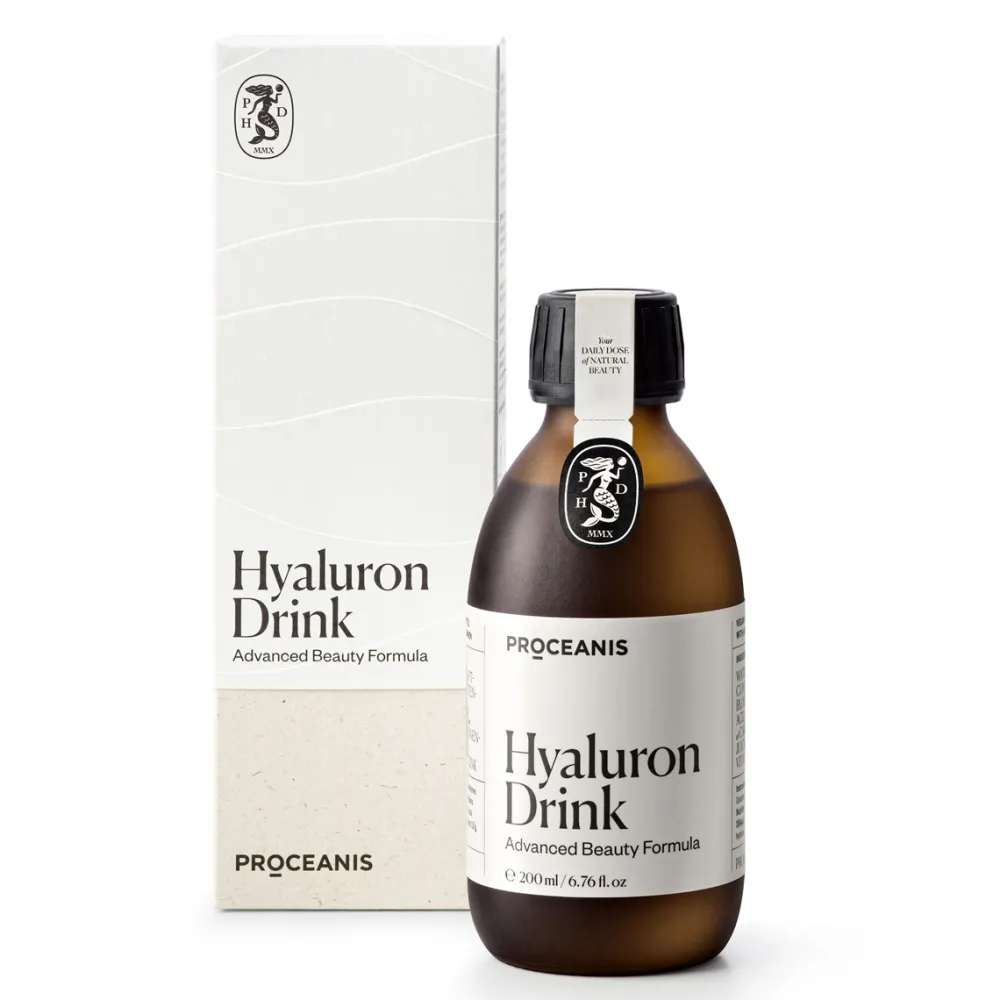 Der Proceanis Hyaluron Drink ist eine bahnbrechende Entwicklung, die sich auf die tiefenwirksame Unterstützung Ihrer Haut konzentriert. Mit 120 mg hochreinem, veganem Hyaluron pro Tagesdosis wird Ihre Haut optimal mit Feuchtigkeit versorgt. Diese einzigartige Formel kombiniert Hyaluronsäure mit einer sorgfältig abgestimmten Nährstoffkombination, darunter Vitamin A, B2, B3, B7, C und Zink, um Haut, Haare und Nägel zu stärken. Der Granatapfel-Extrakt verleiht dem Drink einen angenehm fruchtigen Geschmack und bietet antioxidative Vorteile. Der Proceanis Hyaluron Drink wählt den natürlichen Weg über die Ernährung, um die Schönheit und Vitalität von innen heraus zu fördern. Frei von künstlichen Süßstoffen und Farbstoffen, garantiert dieses Produkt höchste Verträglichkeit und exzellente Wirkung.