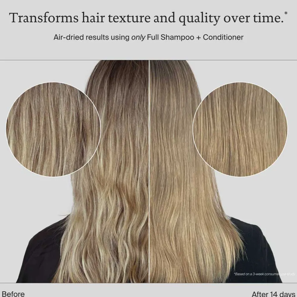 Beginnen Sie mit Full Shampoo. Dann Full Conditioner auftragen, im Haar verteilen und ausspülen.