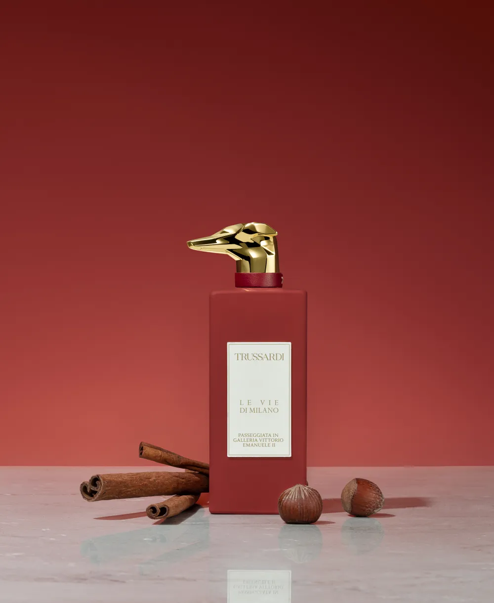 Der Flakon des Trussardi Galleria Vittorio Emanuele Eau de Parfum Nat. Spray ist ein Meisterwerk der Kunstfertigkeit. Seine rechteckige Form strahlt schlichte Eleganz aus, während der Verschluss in Form eines stilisierten Hundekopfes aus goldglänzendem Material ein markantes Detail darstellt. Diese originelle Gestaltung spiegelt die Verbindung von traditioneller Handwerkskunst und modernem Design wider. Die warme Farbe des Flakons zieht alle Blicke auf sich und vermittelt das Gefühl von italienischer Wärme und Gastfreundschaft. Hierbei wird jedes Detail perfekt aufeinander abgestimmt, um das luxuriöse Erlebnis zu vervollständigen.