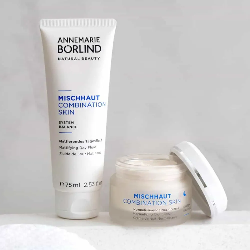Die ANNEMARIE BÖRLIND Normalisierende Nachtcreme ist speziell dafür entwickelt, Mischhaut über Nacht zu verwöhnen. Dank der innovativen Mikroemulsion wird die Creme schnell aufgenommen und hinterlässt ein seidiges Hautgefühl, ohne zu fetten. Die sorgfältig formulierte Rezeptur reduziert nicht nur den Talgüberschuss, sondern beugt auch der Entstehung neuer Hautunreinheiten vor. Gleichzeitig wird die Haut intensiv mit Feuchtigkeit versorgt, wodurch feine Linien und Fältchen gemildert werden. Das Ergebnis ist ein sichtbar erholter Teint, der morgens frisch und bereit für den Tag erscheint. Diese Nachtcreme bietet Ihnen eine wirkungsvolle Pflege, die Ihre Hautbalance wiederherstellt und für ein strahlendes Aussehen sorgt.