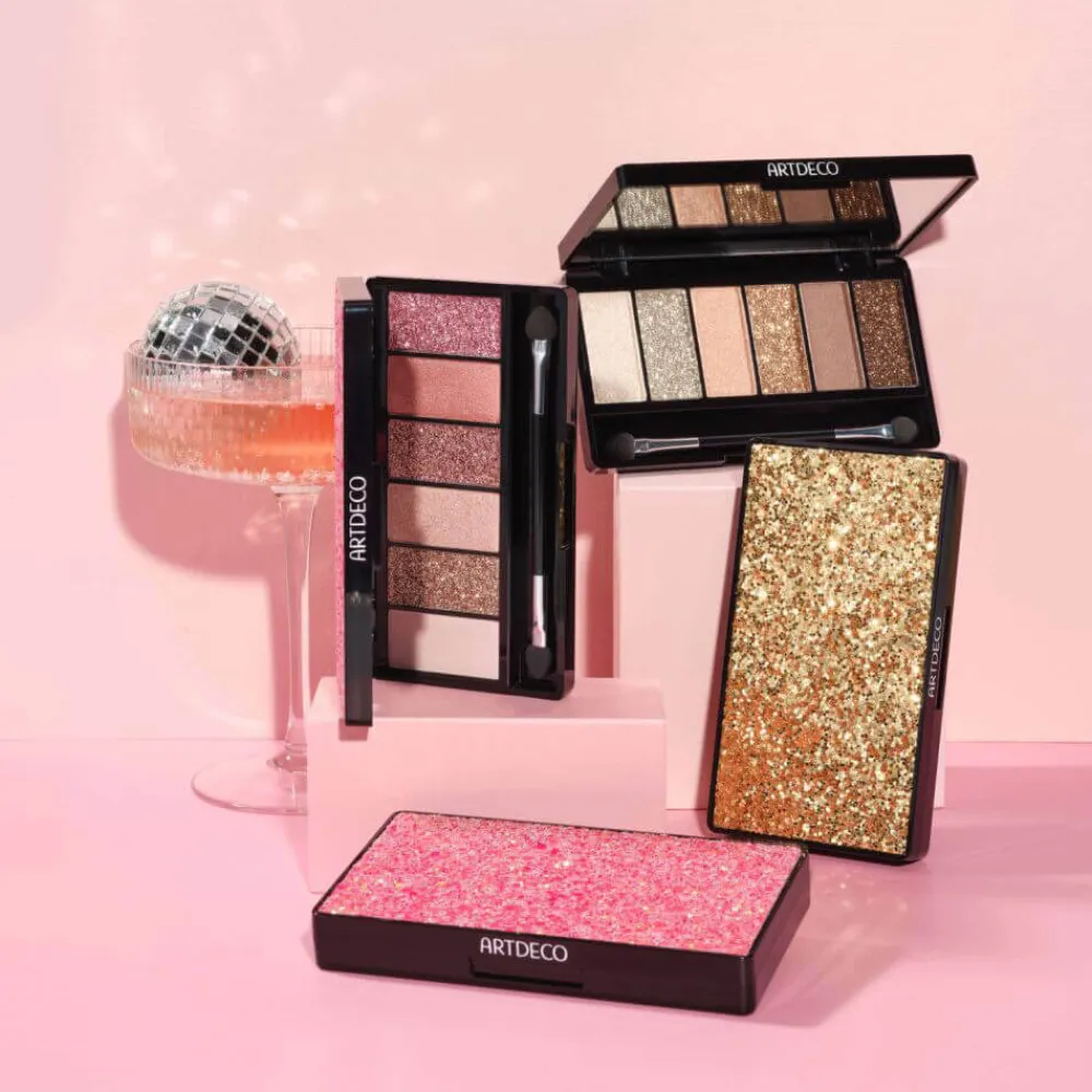 Das außergewöhnliche Design der ARTDECO Glittery Eyeshadow Palette zieht sofort alle Blicke auf sich. Die funkelnde Oberfläche der Dose wirkt wie ein kleines Kunstwerk und bereichert Ihren Schminktisch um ein glamouröses Detail. Im Inneren wartet ein praktischer Applikator sowie ein integrierter Spiegel auf Sie, sodass das Auftragen zum komfortablen Erlebnis wird. Die kompakte Form der Palette ist ideal für unterwegs und bietet Ihnen die Möglichkeit, Ihre Make-up-Routine überall fortzusetzen. Jedes Detail dieser Palette ist mit Bedacht gewählt und vereint Funktionalität mit einem Hauch von Luxus.