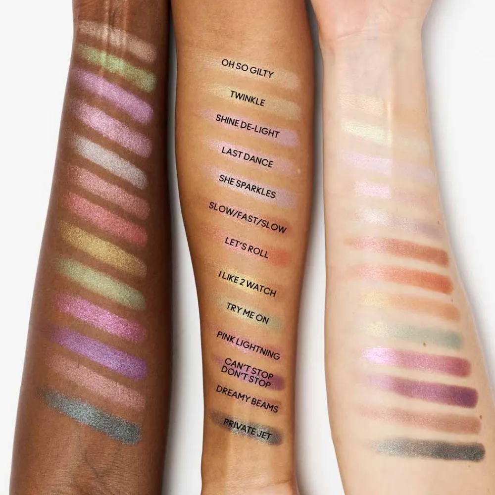 Dieser glitzernde Lidschattenpuder sorgt für ein multidimensionales, perlmuttartiges Finish mit 12 Stunden Halt. Jede der transparenten, schimmernden Farbtöne sorgt für einen intensiven Glanz mit leuchtenden, prismatischen Pigmenten, die im Licht tanzen und dir mit jedem leichten Auftrag einen ultra-reflektierenden, Disco-tauglichen Blick verleihen. Trage ihn auf die Lider auf, setze ihn in den inneren Augenwinkeln ein oder trage diese falten- und verblassungsresistente Formel über jedem Lidschatten auf, um ein atemberaubendes, glitzerndes Finish zu erzielen, das so seidig glatt ist wie deine Bewegungen.
