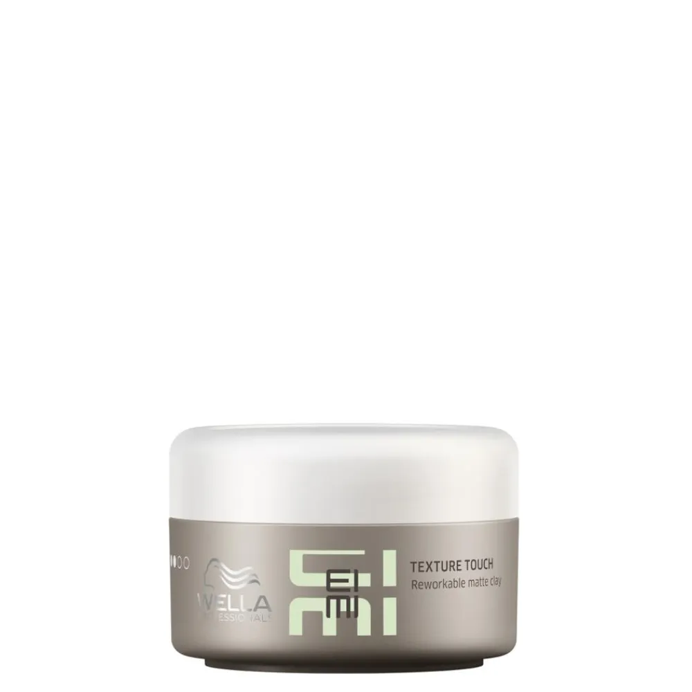 Der EIMI Texture Touch Modellierkitt besticht durch ein elegantes, minimalistisches Design. Der runde Tiegel ist in einem ansprechenden, matten Grauton gehalten, der stilvoll und unaufdringlich wirkt. Das schlichte, aber edle Erscheinungsbild wird durch den dezenten Schriftzug abgerundet, der dem Behältnis einen modernen Touch verleiht. Die kompakte Form liegt gut in der Hand und macht die Anwendung besonders komfortabel. Mit seiner hochwertigen Optik und Haptik spiegelt dieser Modellierkitt die Professionalität und hohe Qualität wider, die Wella auszeichnet.