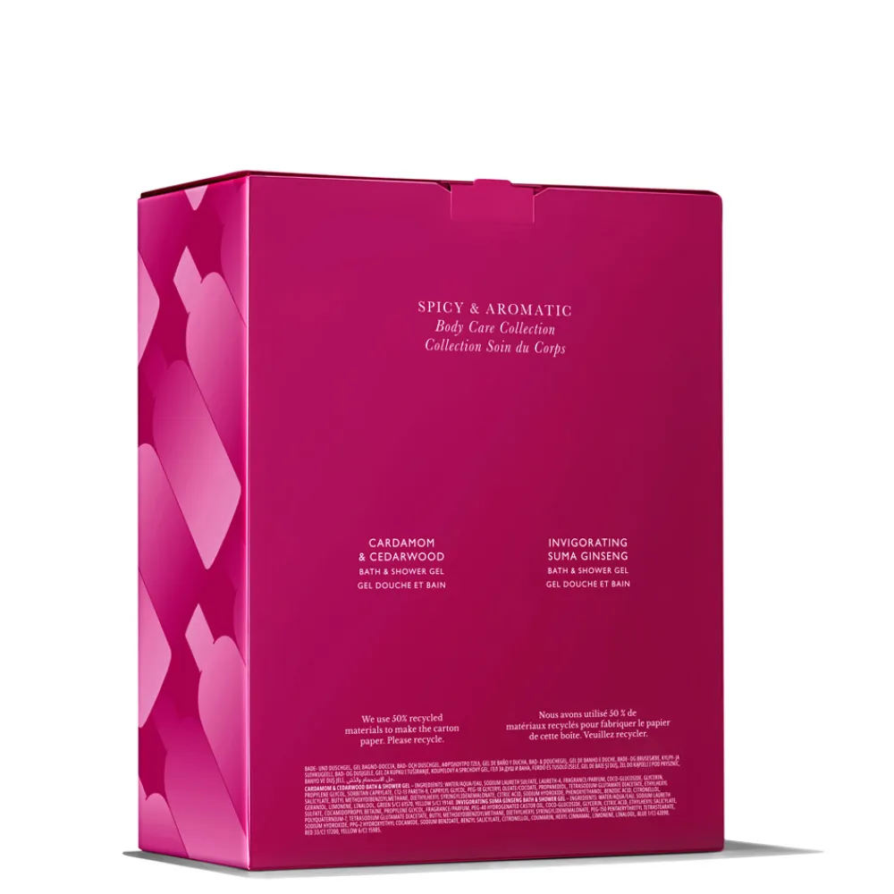 Die Molton Brown Spicy & Aromatic Body Care Collection verwöhnt Sie mit einem unvergesslichen Dufterlebnis. Die harmonische Verbindung von warmem Kardamom und Zedernholz sorgt für ein tiefes, würziges Aroma, das Ihre Sinne belebt. Ergänzt wird dieses Erlebnis durch die frischen Noten von Zitrusfrüchten, die für eine belebende Frische sorgen. Patchouli verleiht dem Duft eine samtige Tiefe, die das Badeerlebnis abrundet. Dieses Set bietet Ihnen zwei exquisite Duschgels, die Ihnen sowohl morgens als auch abends ein Gefühl von Luxus und Erfrischung schenken. Lassen Sie sich von dieser Komposition in eine Welt voller Energie und Vitalität entführen.