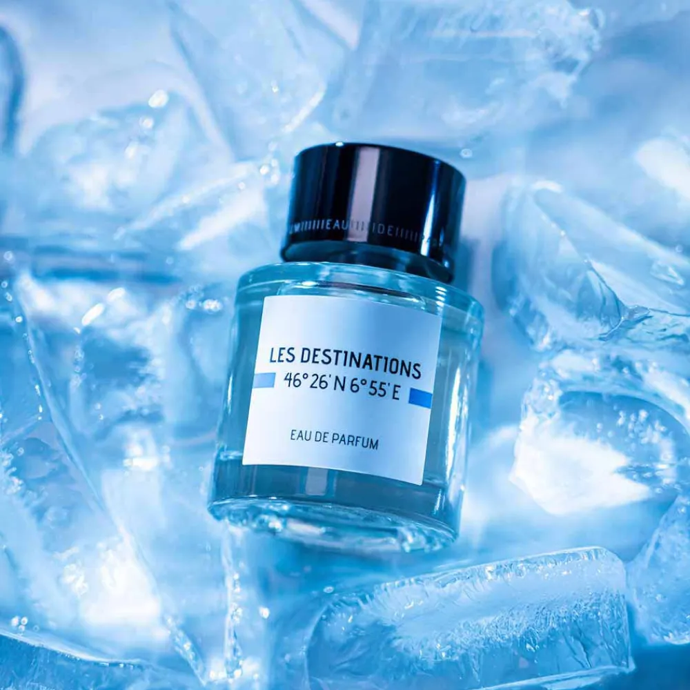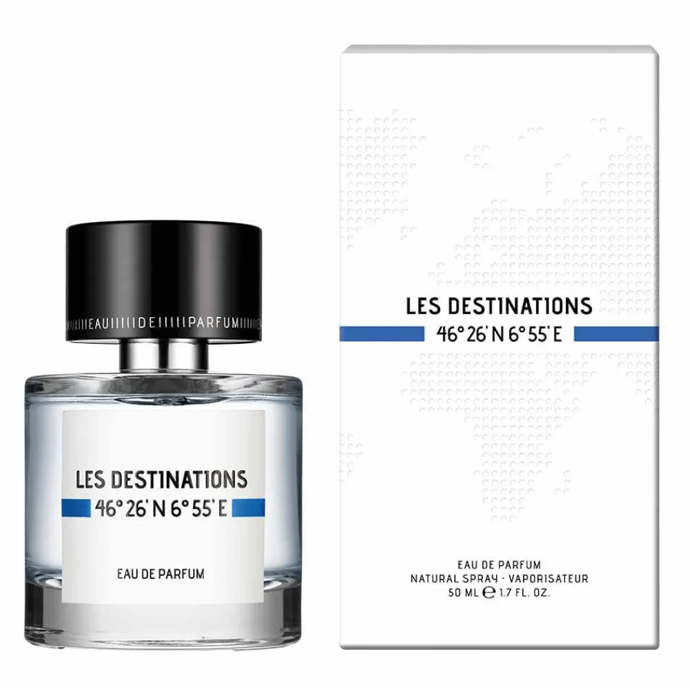 Der Flakon des LES DESTINATIONS Parfums beeindruckt durch seine klare, schlichte Form und die elegante Farbgebung. Der zylindrische Glasflakon vermittelt mit seiner Transparenz eine kristallklare Reinheit, während der tiefschwarze Verschluss einen edlen Kontrast bildet. Die präzise aufgebrachten Koordinaten verleihen dem Design eine individuelle Note und wecken die Neugier auf die geheimnisvollen Inspirationsorte. Die Typografie ist modern und minimalistisch, unterstreicht somit die Hochwertigkeit des Inhalts und zieht den Betrachter in ihren Bann.