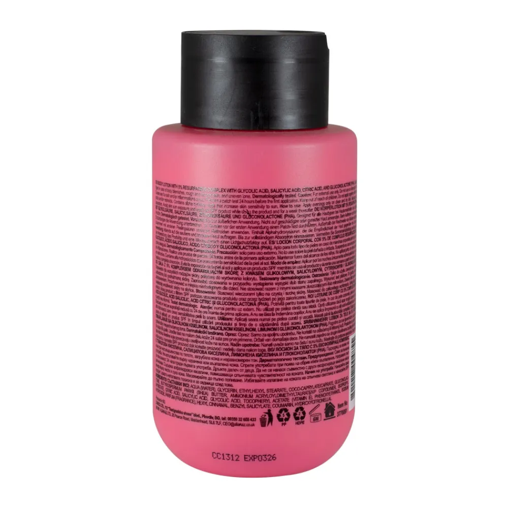 Die Skincyclopedia Body Lotion 5% Resurfacing Complex bietet eine innovative Lösung für alle, die eine verfeinerte und gleichmäßige Hautstruktur anstreben. Mit einem kraftvollen Komplex aus Glykol-, Salicyl- und Zitronensäure sowie Gluconolacton (PHA) wird Ihre Haut sanft aber effektiv erneuert. Diese einzigartige Kombination ist ideal, um Unreinheiten und raue Haut zu behandeln und gleichzeitig den natürlichen Glanz Ihrer Haut zu fördern. Der erfrischende Duft von Ananas und Kokosnuss umschmeichelt die Sinne, während die dermatologisch getestete Formel effektiv für alle Hauttypen geeignet ist. Bitte beachten Sie, dass die Lotion nur abends aufgetragen werden sollte, um die Haut optimal zu schützen. Durch die Anwendung entstehen sanfte Peeling-Effekte, die die Haut auf Sonnenlicht empfindlicher reagieren lassen; daher wird die Verwendung eines SPF-Produkts empfohlen.