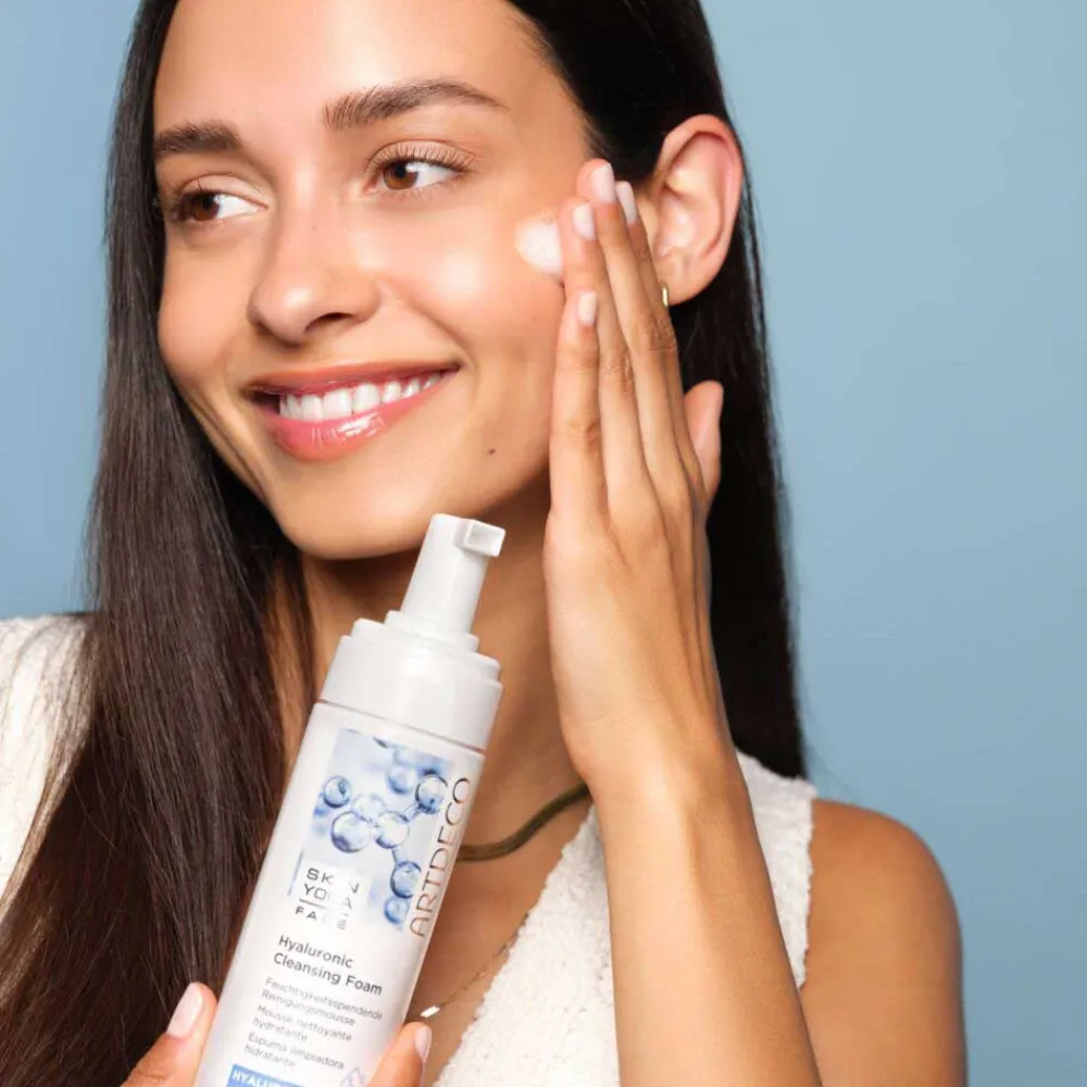 Ein seidiges Hautgefühl und ein reiner, strahlender Teint – mit dem intensiv feuchtigkeitsspendenden ARTDECO Hyaluronic Cleansing Foam! Der sahnige Schaum reinigt sanft Dein Gesicht, Hals und Dekolleté. Make-up und umweltbedingte Verunreinigungen der Haut werden dabei gründlich und schonend entfernt, ohne die Haut auszutrocknen. Angereichert mit milden Tensiden und einem aktiven Hyaluronsäurekomplex überzeugt die Mousse mit einem äußerst pflegenden Charakter. Ein fruchtig-frischer Duft belebt dabei Deine Sinne.Die wichtigsten Inhaltsstoffe und ihre Wirkung: – Hochmolekulare Hyaluronsäure: Bildet einen dünnen, durchlässigen, unsichtbaren und viskoelastischen Film auf der Epidermis, der die Feuchtigkeit auf der Haut wirksam bindet und speichert und sie so schützt – Hyaluronsäure mit mittlerem Molekulargewicht: Bildet einen langanhaltenden Schutz- und Feuchtigkeitsfilm und reguliert den Wassergehalt in den Zellen – Milde Tenside: Reinigen besonders sanft und minimieren das Risiko von Hautirritationen – Glycerin: Umhüllt die Hautschüppchen in der Hornschicht und glättet so die Haut. Außerdem erhöht es nachweislich die Hautelastizität und unterstützt effektiv den hauteigenen Feuchtigkeitshaushalt