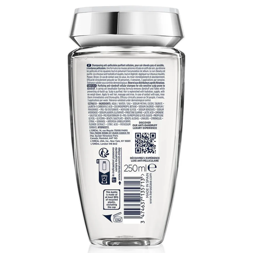 Das KÉRASTASE Bain Pureté Anti-Pelliculaire bietet eine einzigartige Lösung für diejenigen, die mit schnell fettender und schuppiger Kopfhaut kämpfen. Speziell entwickelt ohne Sulfate und Silikone, sorgt dieses Haarbad für eine sanfte, aber effektive Reinigung, die die Kopfhaut beruhigt und Schuppen effizient entfernt. Die Kombination aus Pirocton-Olamin und Salicylsäure arbeitet zielgerichtet, um sichtbare Schuppen sofort zu beseitigen und ihre Neubildung langfristig zu minimieren. Besonders bei empfindlicher Kopfhaut entfaltet das Produkt seine wohltuende Wirkung und verleiht dem Haar eine seidig-glatte Struktur. Erleben Sie das Gefühl von Erfrischung und Reinheit, das Ihrem Haar eine neue Lebendigkeit verleiht.