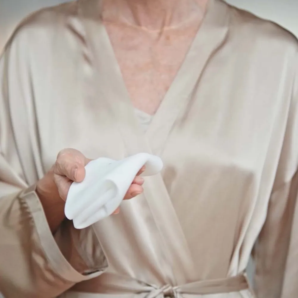 Die SENSAI SENSAI SPONGE CHIEF® beeindruckt durch ihr minimalistisches und elegantes Design. Die weiße, weiche Struktur des Schwammtuchs vermittelt Reinheit und Funktionalität. Es ist geschmeidig und feinporig, was eine sanfte Anwendung auf der Haut garantiert. Die subtil ins Tuch eingebettete Beschriftung verleiht ihm eine dezente Eleganz, die sich harmonisch in jedes Badezimmerambiente einfügt. Das Tuch ist nicht nur ein Pflegeprodukt, es ist ein stilvoller Begleiter, der Funktionalität mit ästhetischem Anspruch vereint. Die durchdachte Form ermöglicht eine präzise Handhabung, die auch den anspruchsvollsten Pflegebedürfnissen gerecht wird.
