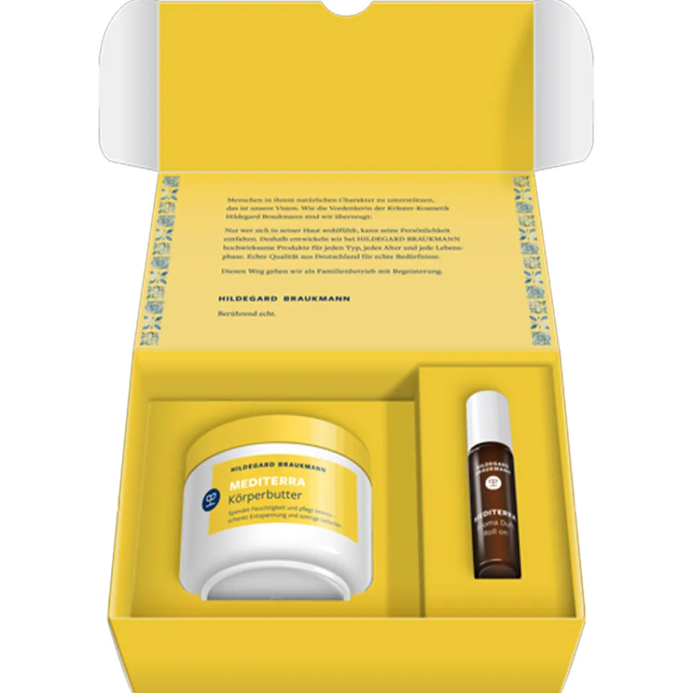 Inhalt: 1x 200ml Mediterra Körperbutter + 1x10ml Mediterra Duftöl