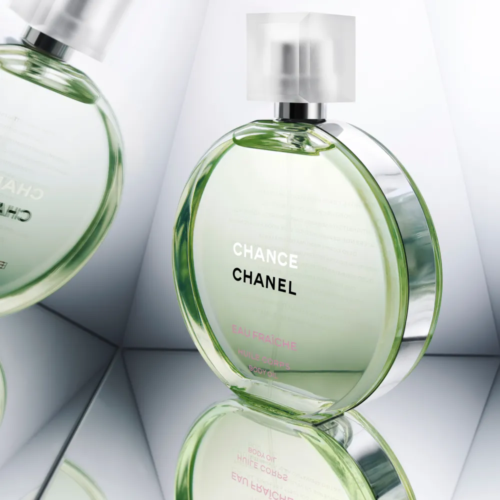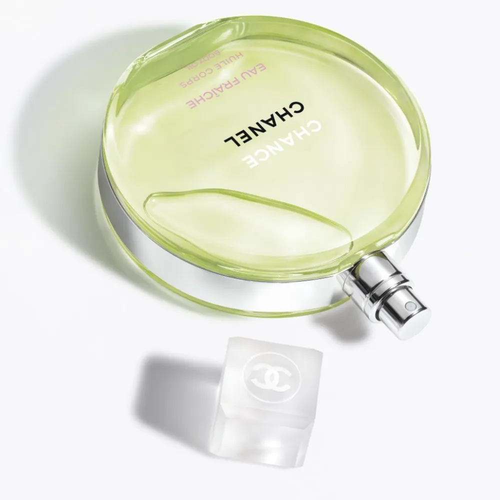 Das CHANCE EAU FRAÎCHE Körperöl – präsentiert im ikonischen CHANCE Glasflakon und in 150 ml Größe – ergänzt Ihr Duftritual. Durch das praktische Sprayformat lässt es sich einfach und großzügig auftragen.