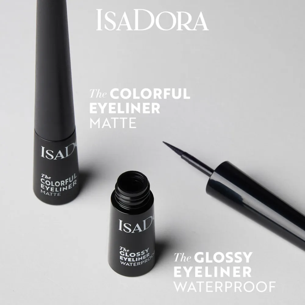 Der IsaDora Colorful Eyeliner beeindruckt nicht nur durch seine Eigenschaften, sondern auch durch sein elegantes Design. Der schlanke, schwarze Flakon strahlt eine moderne Ästhetik aus und liegt angenehm in der Hand. Die matte Oberfläche verleiht ihm einen edlen Touch, während die klar definierte Spitze des Applikators präzise Linien ermöglicht. Die harmonische Verbindung aus Form und Funktion macht diesen Eyeliner zu einem stilvollen Begleiter in Ihrer Kosmetiktasche. Das dezente Branding unterstreicht seine Exklusivität und sorgt für einen professionellen Look.