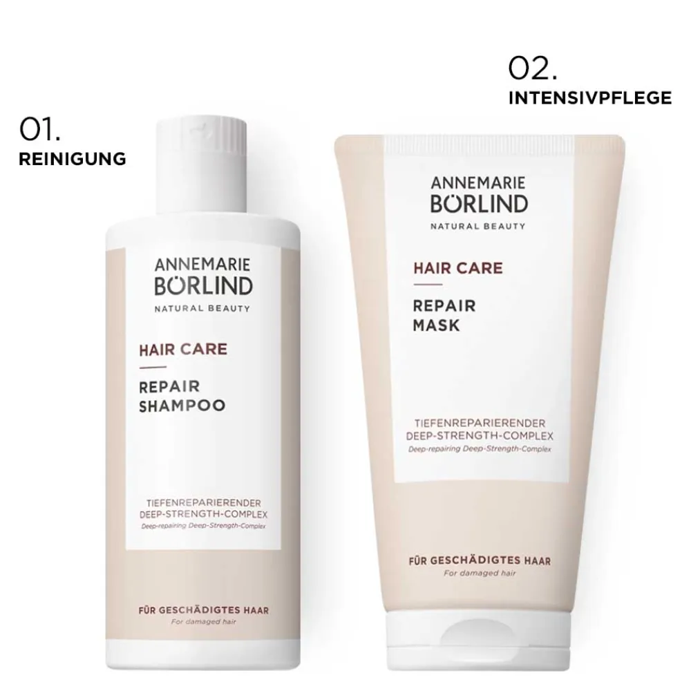 REPAIR MASKE – Intensive Pflege & Schutz für strapaziertes Haar Die REPAIR MASKE mit DeepStrength- Complex aus pflanzlichem Keratin aus der Sonnenblumensprosse und veganem Kollagen repariert das Haar tiefenwirksam und schützt es vor täglichen Belastungen wie Hitzeschäden, UV-Strahlen und Umwelteinflüssen*. Pflanzliches Keratin und veganes Kollagen stärken das Haar, beugen Haarbruch vor und pflegen es intensiv. Repair & Gloss-Effekt – Mit einem natürlichen Lipidkomplex aus Jojobawachs, Sonnenblumenwachs und flüssigen Lipiden versorgt diese Formel das Haar mit intensiver Pflege, reduziert Frizz und sorgt für strahlenden Glanz – für sichtbar geschmeidigeres Haar. -Tiefenwirksame Reparatur & Stärkung des Haares -Reduktion von Frizz & strahlender Gloss-Effekt -Schutz vor Hitze, UV-Strahlen & Umwelteinflüssen* Für gesund aussehendes, geschmeidiges Haar – ideal für geschädigtes und strapaziertes Haar. * Haarschutz vor oxidativer Schädigung