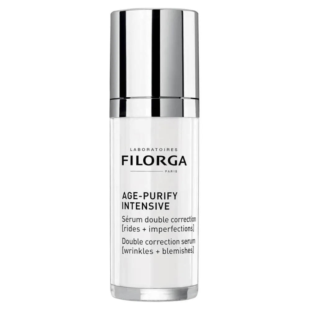 Das Filorga Age-Purify Intensive Serum bietet Ihnen eine innovative Lösung, um sowohl Falten als auch Unreinheiten mit nur einem Produkt zu behandeln. Der Hyaluro-Youth Complex arbeitet intensiv gegen Falten, indem er feuchtigkeitsspendende Hyaluronsäure, glättende Peptide und füllende Glycopeptide nutzt, um die Haut sichtbar zu straffen und zu erneuern. Gleichzeitig sorgt der Dermo-Rescue Complex für eine porenverfeinernde Wirkung, indem er mit Zink und Mikro-Peeling-Säuren überschüssigen Talg reduziert und Mitesser minimiert. Eine zusätzliche pflanzliche Komponente wirkt präventiv gegen Unreinheiten, um den Hautton zu harmonisieren. Das Serum überzeugt durch seine nicht komedogene, ultra-leichte Textur, die schnell einzieht und der Haut eine seidige Geschmeidigkeit verleiht.