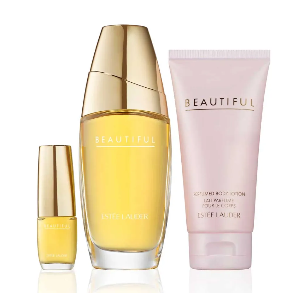 Schenken Sie Freude in dieser Festtagssaison – mit purer Optimismus in einer Flasche. So belebend wie frische Blumen nach einem Frühlingsregen. Dieser klare, funkelnde Blumenduft ist eine zart-weiche Komposition aus Lilien, weißen Pfingstrosen und Jasmin, erhellt durch die Essenz von Rosa Pfeffer. Die luxuriöse, reichhaltig feuchtigkeitsspendende Body Lotion lässt sich leicht auftragen, zieht schnell ein und hinterlässt die Haut glatt und seidig. DIE ZUKUNFT DER SCHÖNHEIT GEMEINSAM GESTALTEN.Bitte recyceln Sie die Papierplattform. Verwenden Sie die Geschenkbox als Andenken oder recyceln Sie sie. Im Set enthalten: 1 Beautiful Mini EDP Spray 4,7ml, 1 Beautiful EDP Spray , 1 Beautiful Body Lotion 75ml