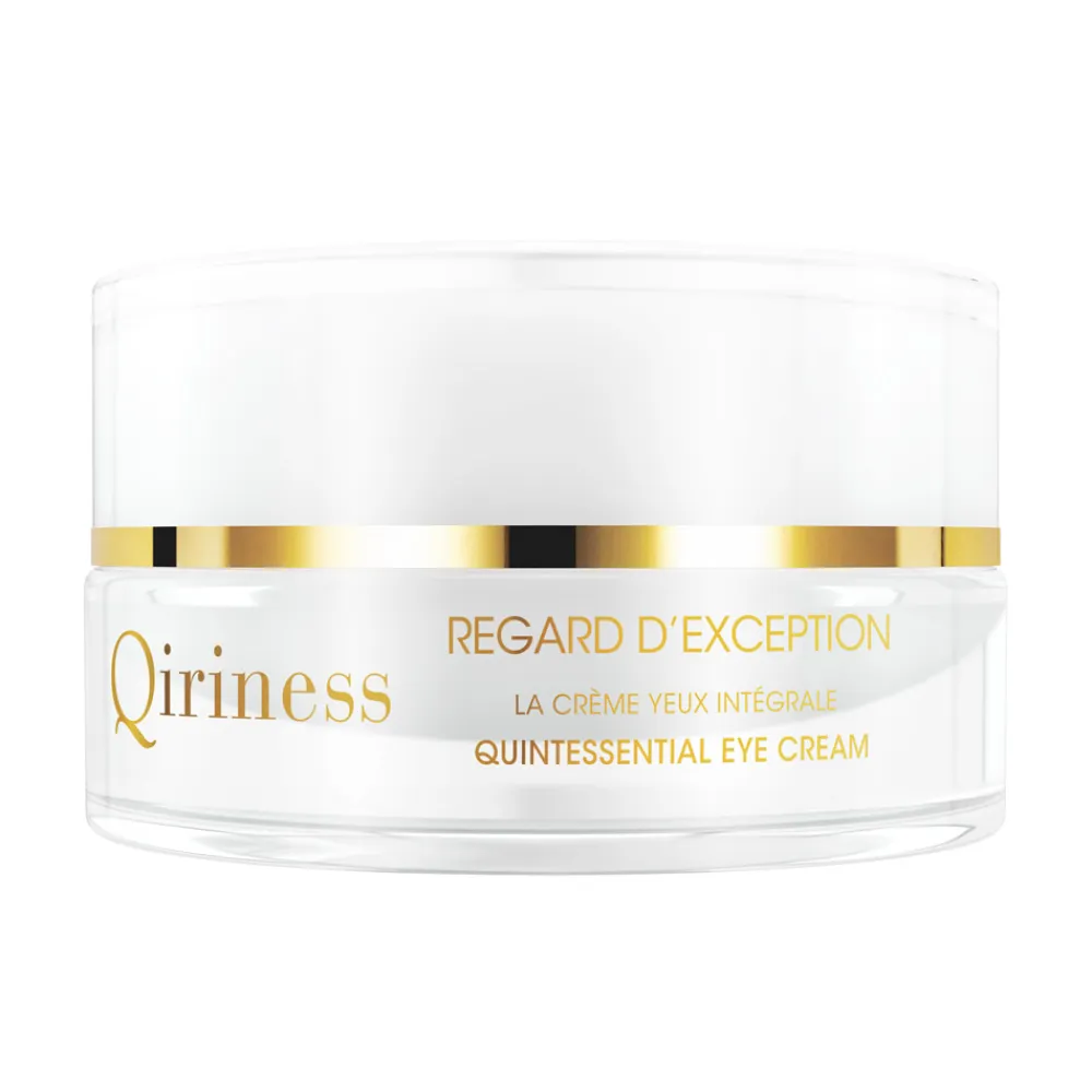 Der elegante Tiegel von QIRINESS Regard d’Exception spiegelt die Reinheit und Modernität wider, die sich in der Formel finden. Das klare Glas in Kombination mit dezenten goldenen Akzenten verleiht dem Produkt einen zeitlosen, luxuriösen Charakter. Die kompakte, runde Form liegt angenehm in der Hand und macht die tägliche Anwendung zu einem kleinen Ritual der Selbstpflege. Das Design, schlicht und doch markant, fügt sich harmonisch in jedes Badezimmer ein und setzt dabei einen edlen Akzent. Ein Beispiel für formvollendete Ästhetik, das ebenso vielversprechend wie die Pflege selbst ist.