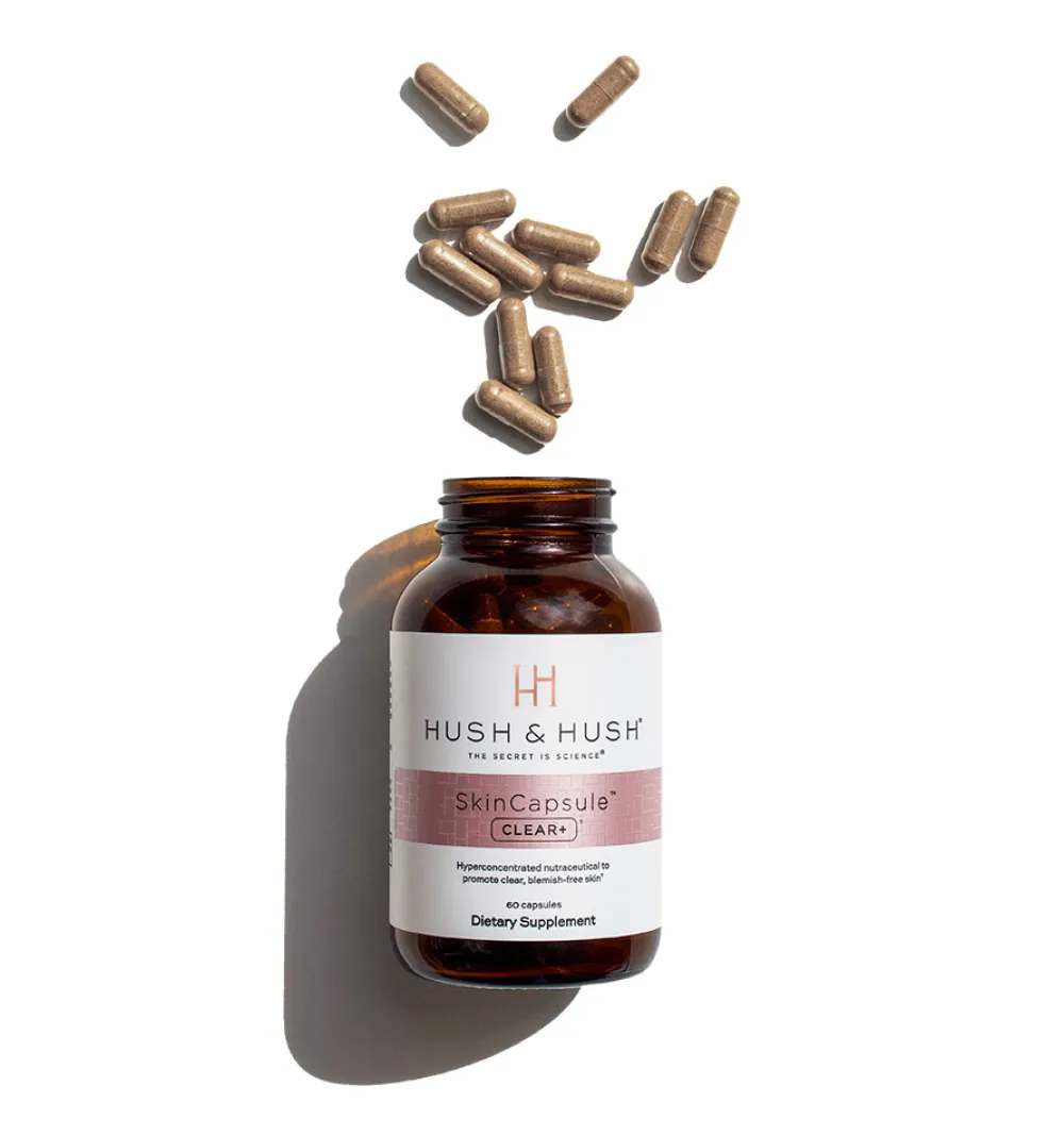 Mit HUSH & HUSH SkinCapsule™ CLEAR+ erleben Sie eine innovative Pflege von innen. Dieses Nahrungsergänzungsmittel ist speziell entwickelt, um irritierte und unreine Haut zu beruhigen und ein frisches, klares Hautbild zu fördern. Durch eine sorgfältig abgestimmte Mischung klinischer pflanzlicher Wirkstoffe werden Makel effektiv bekämpft, während Rötungen und Entzündungen sichtbar reduziert werden. Vertrauen Sie auf die Wissenschaft und schenken Sie Ihrer Haut die Pflege, die sie verdient, um in ihrer besten Form zu erstrahlen.