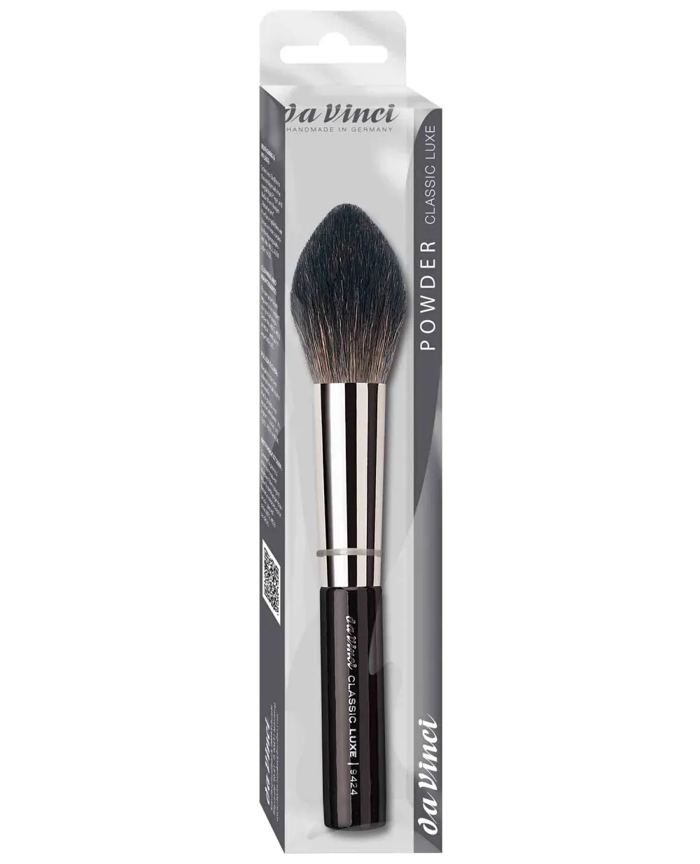 Optisch besticht der da Vinci Puderpinsel spitz 9424 durch seine schlichte Eleganz. Der schwarz-glänzend lackierte Holzgriff liegt angenehm in der Hand und wirkt durch seine edle Verarbeitung besonders stilvoll. Die silberne Zwinge kontrastiert harmonisch mit den dunklen Echthaaren, was dem Pinsel ein ansprechendes und professionelles Aussehen verleiht. Die spitze Form der Borsten ermöglicht es, selbst schwer erreichbare Partien Ihres Gesichts optimal zu behandeln. Jeder Aspekt des Designs ist durchdacht, um sowohl ästhetisch als auch funktional zu überzeugen. Dieses Zusammenspiel aus Form und Funktion macht den Pinsel zu einem herausragenden Werkzeug in Ihrer Kosmetiksammlung.